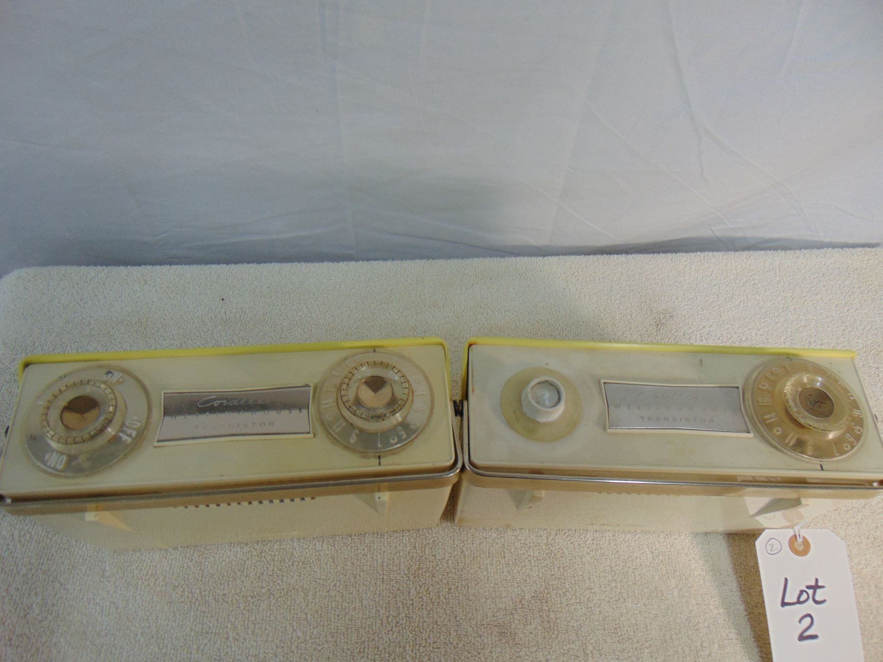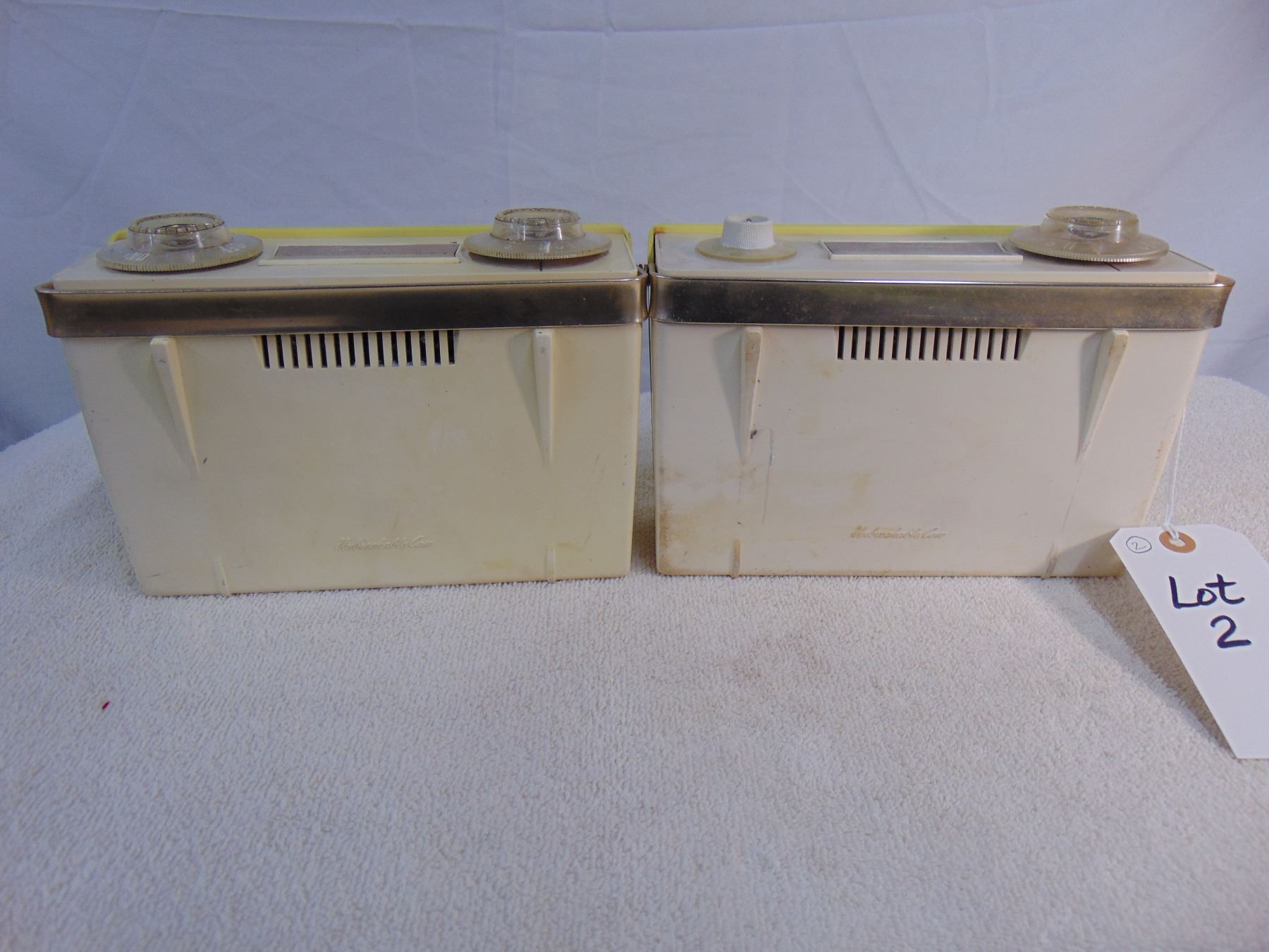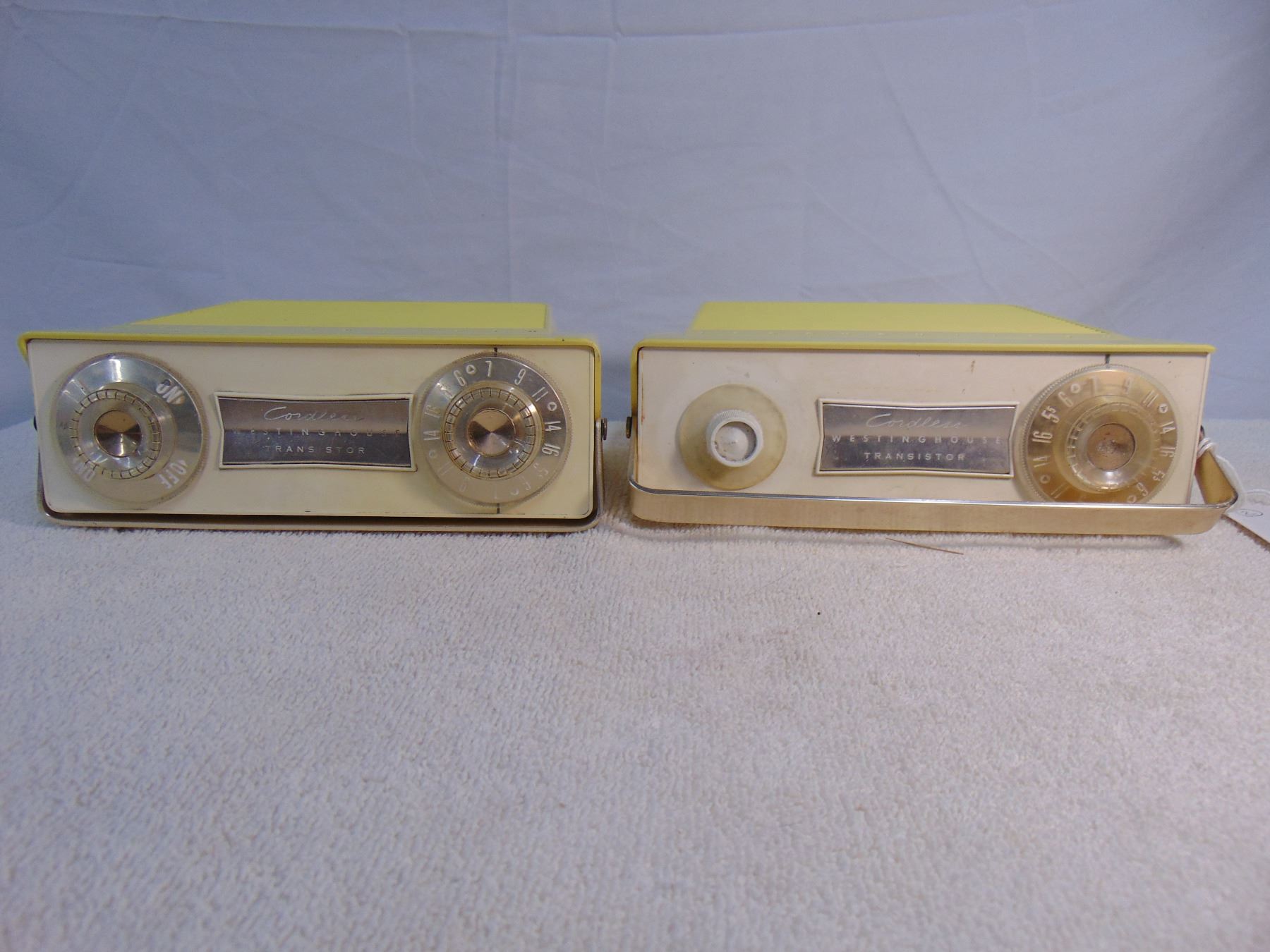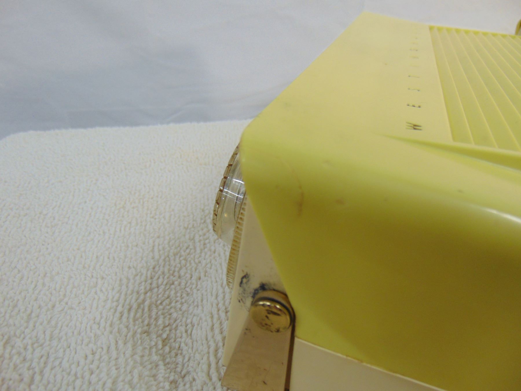 Two Cordless Westinghouse Transistor Radio. Yellow radios with handle. Model H622P6. Some cabinet damage on one radio.
