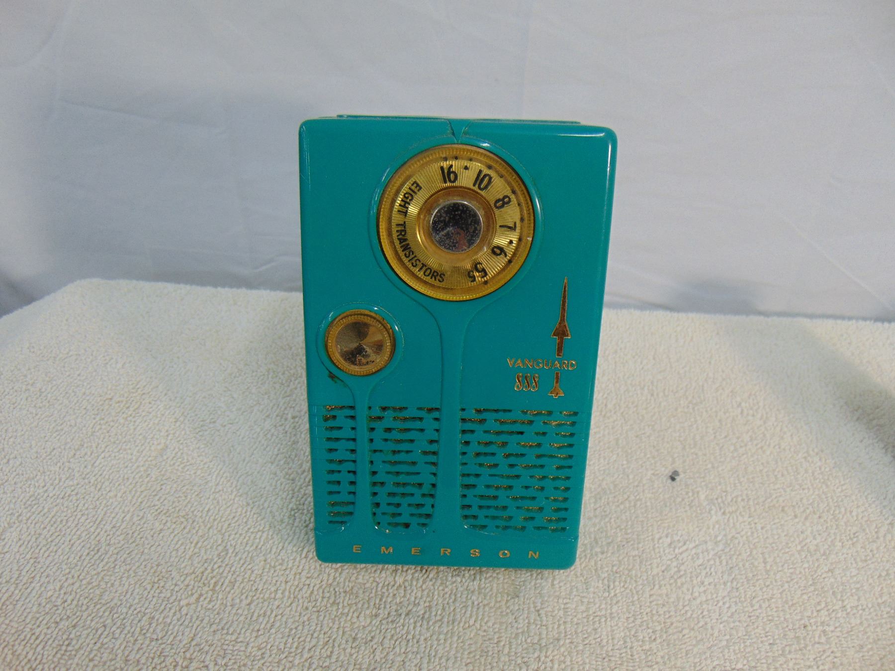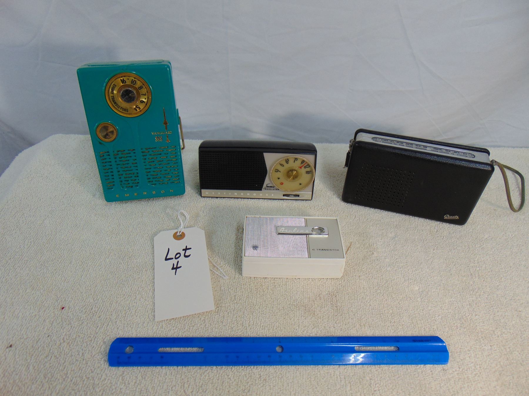 Four vintage transistors including Emerson, Airline, Westinghouse, and Graetz; all very nice