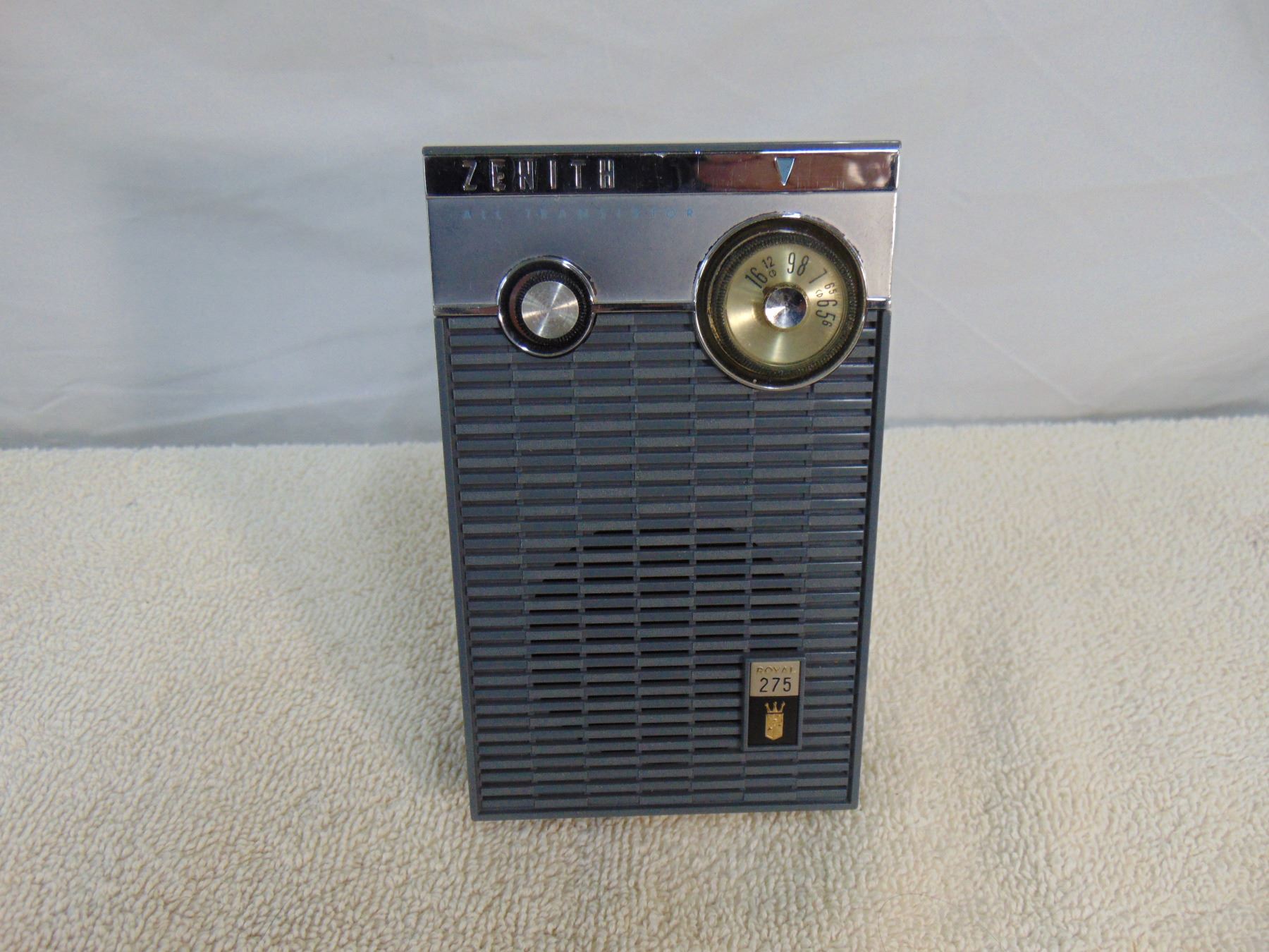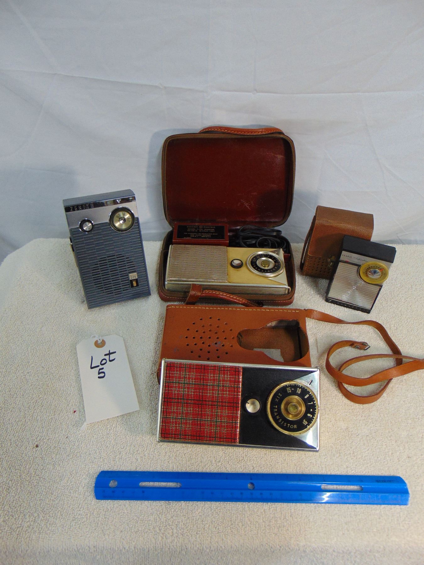 Four vintage transistors including two General Electric, Zenith Royal 275, Silvertone; all nice condition