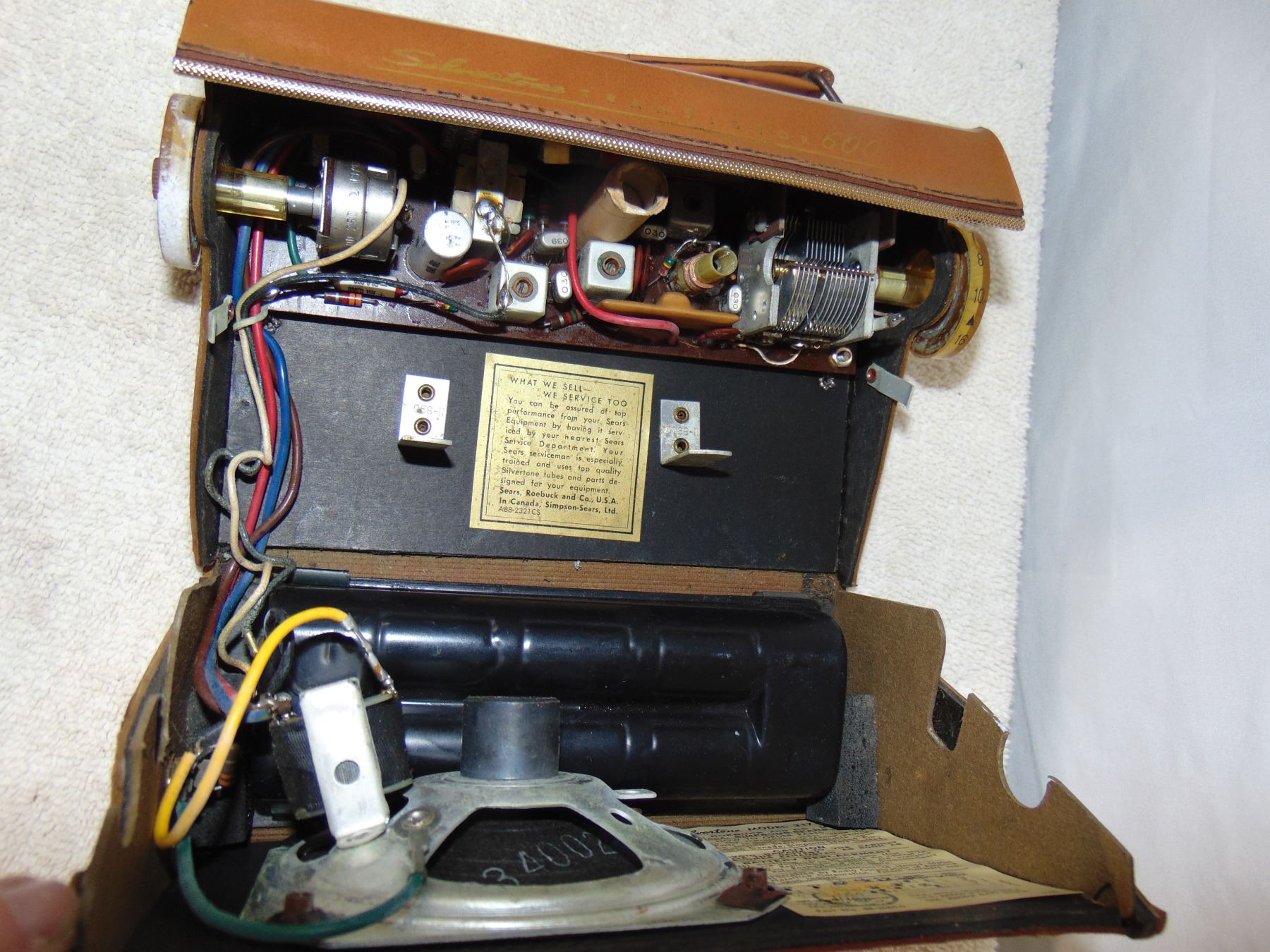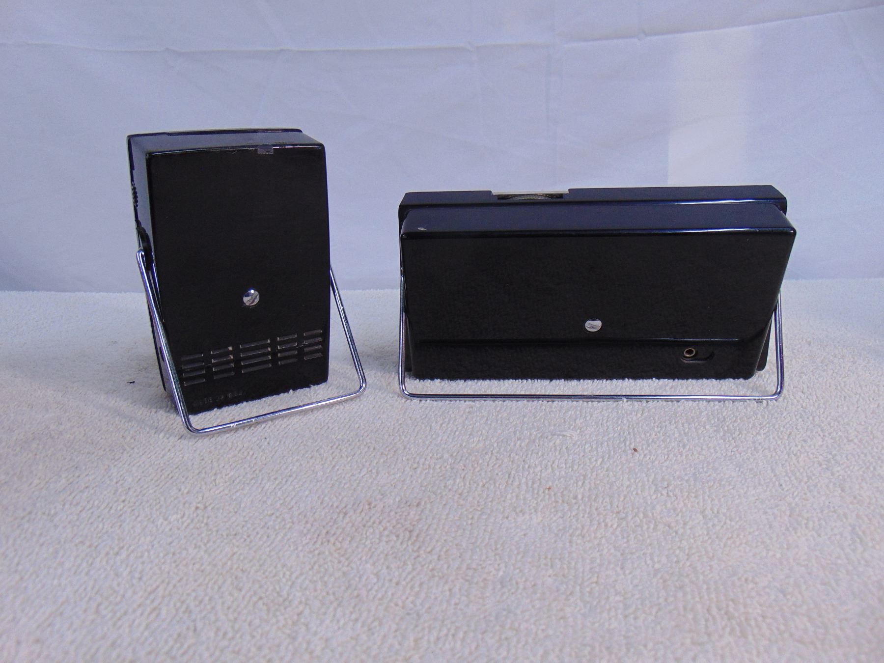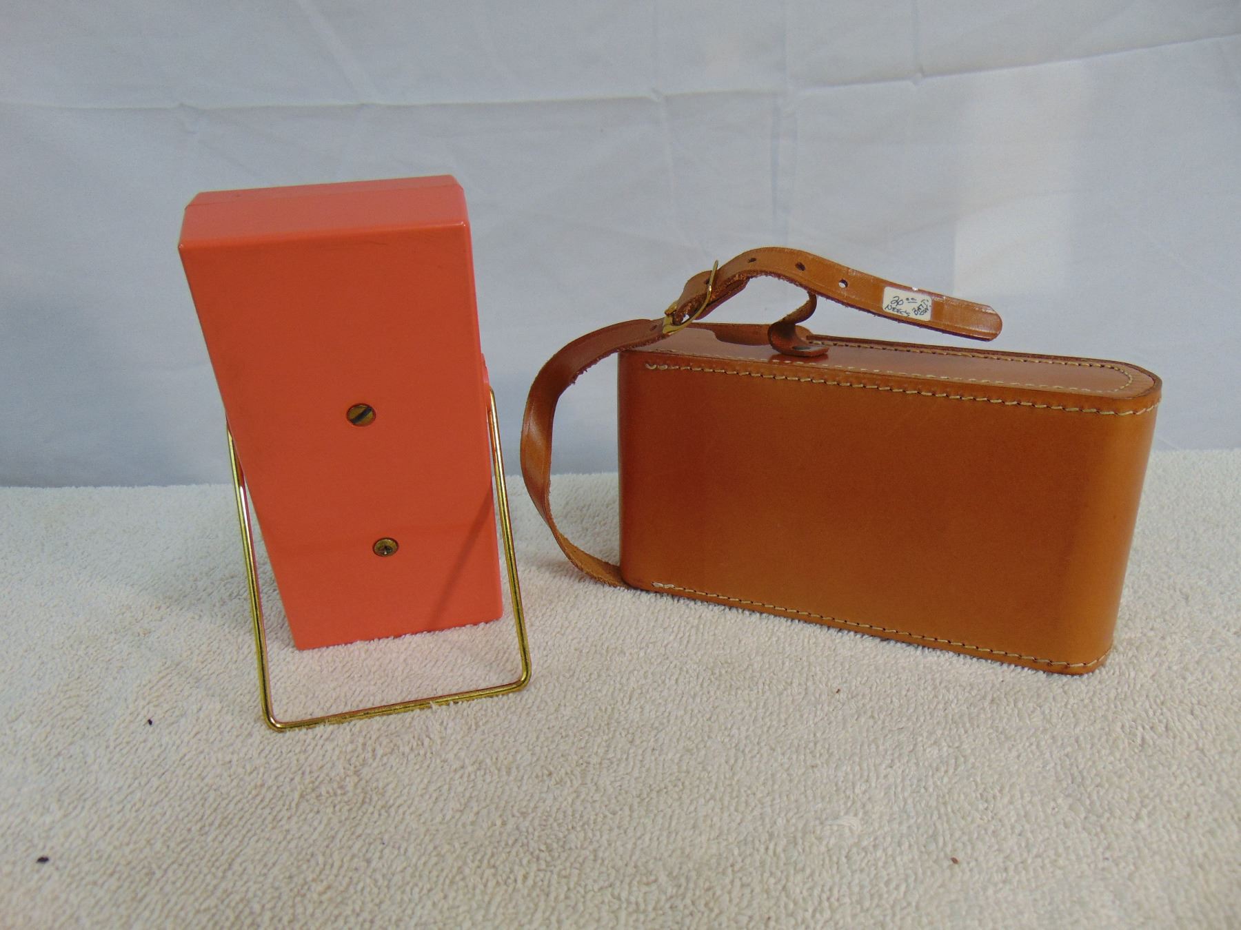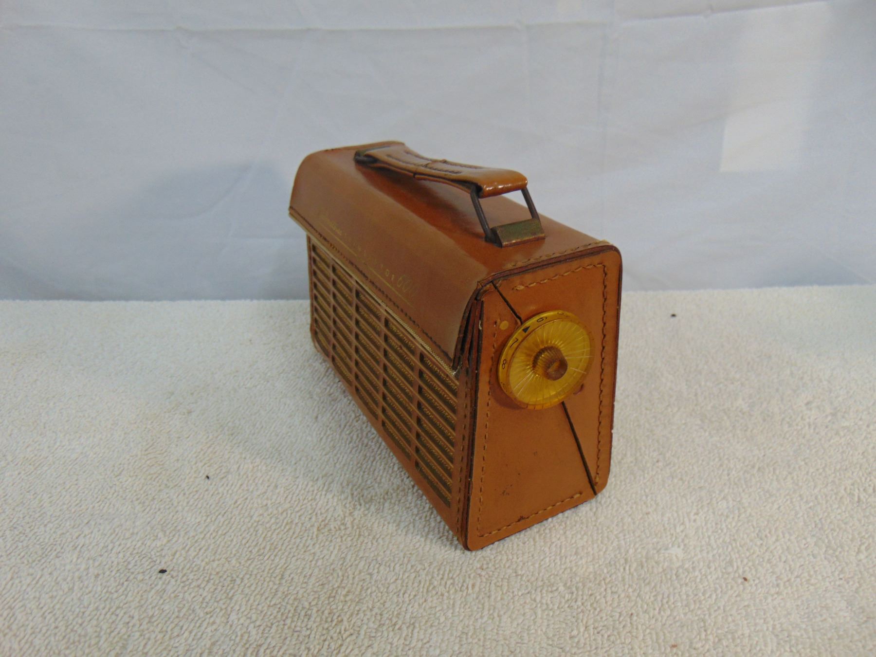Four Silvertone vintage transistors including the rare salmon color in excellent leather case; very nice condition