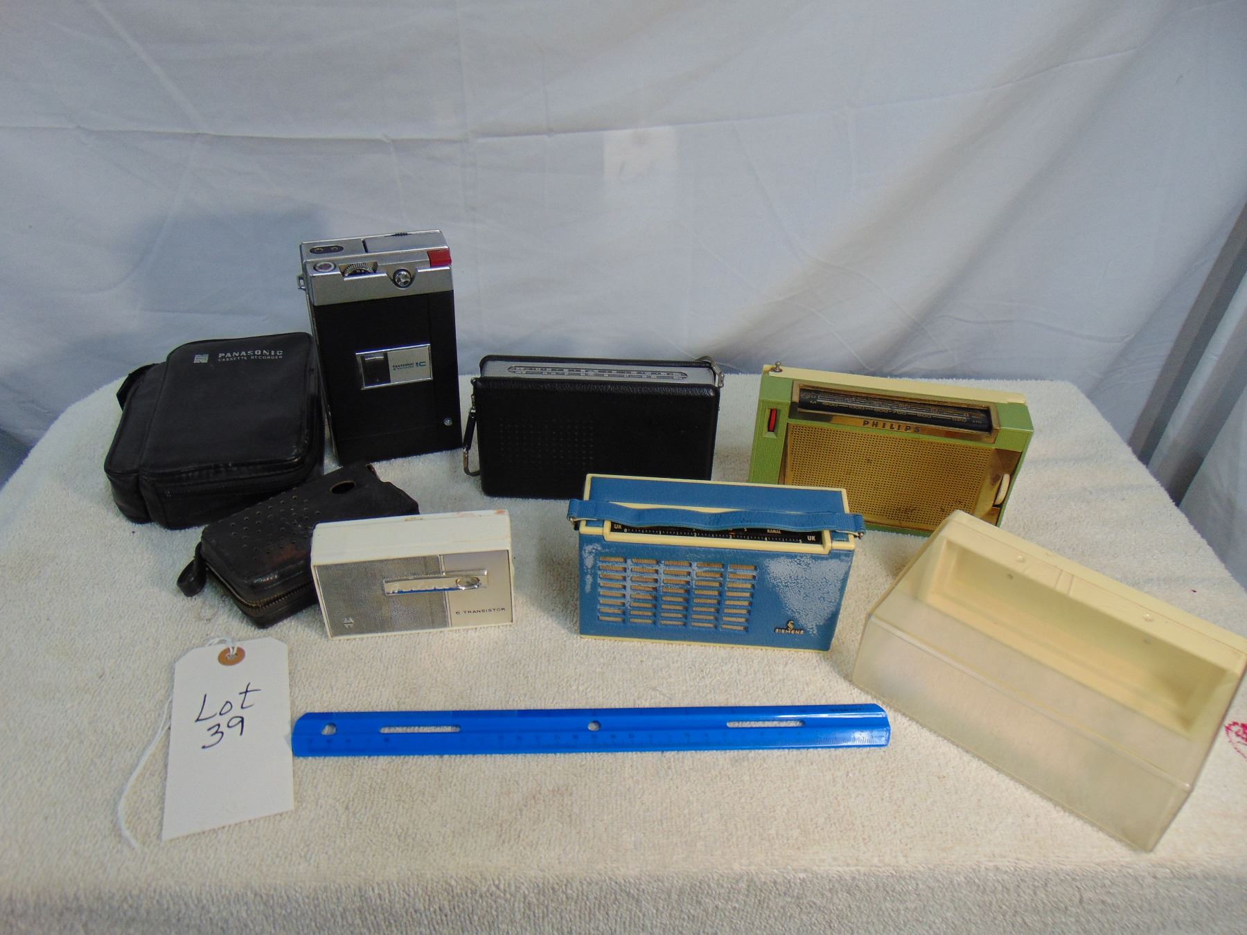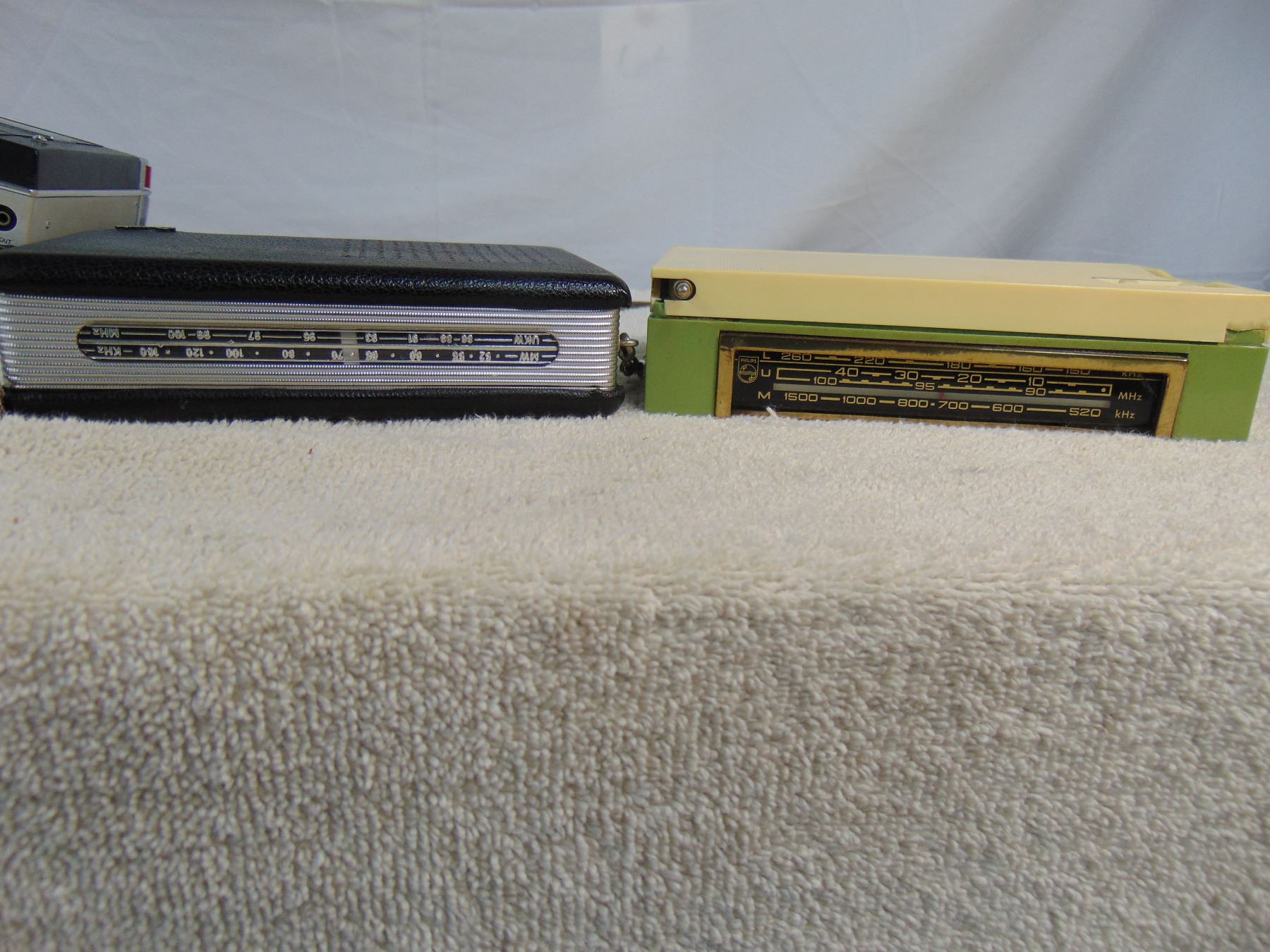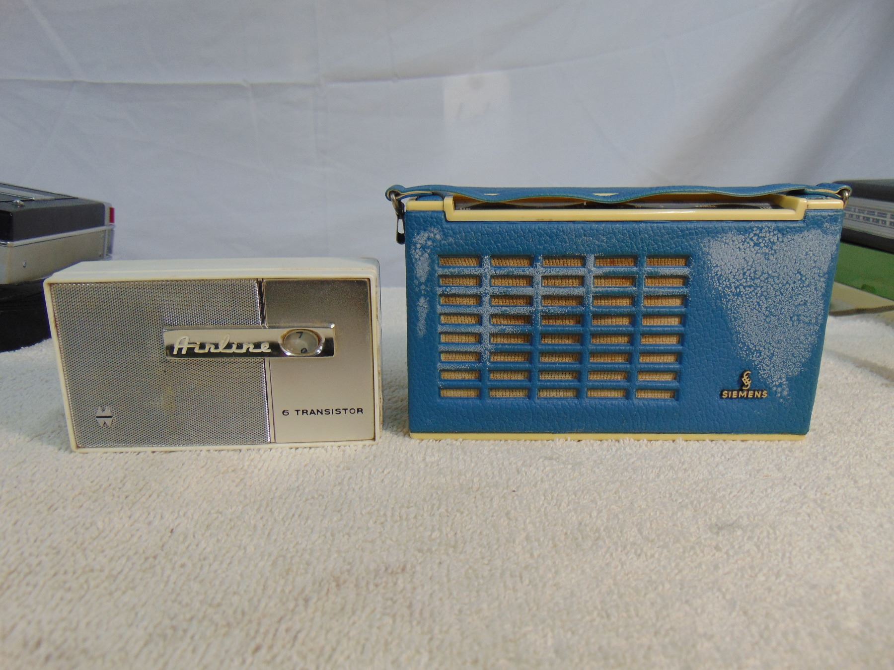Four vintage transistors including Philips, Airline, Siemens, and Graetz. One Panasonic cassette portable; all very nice