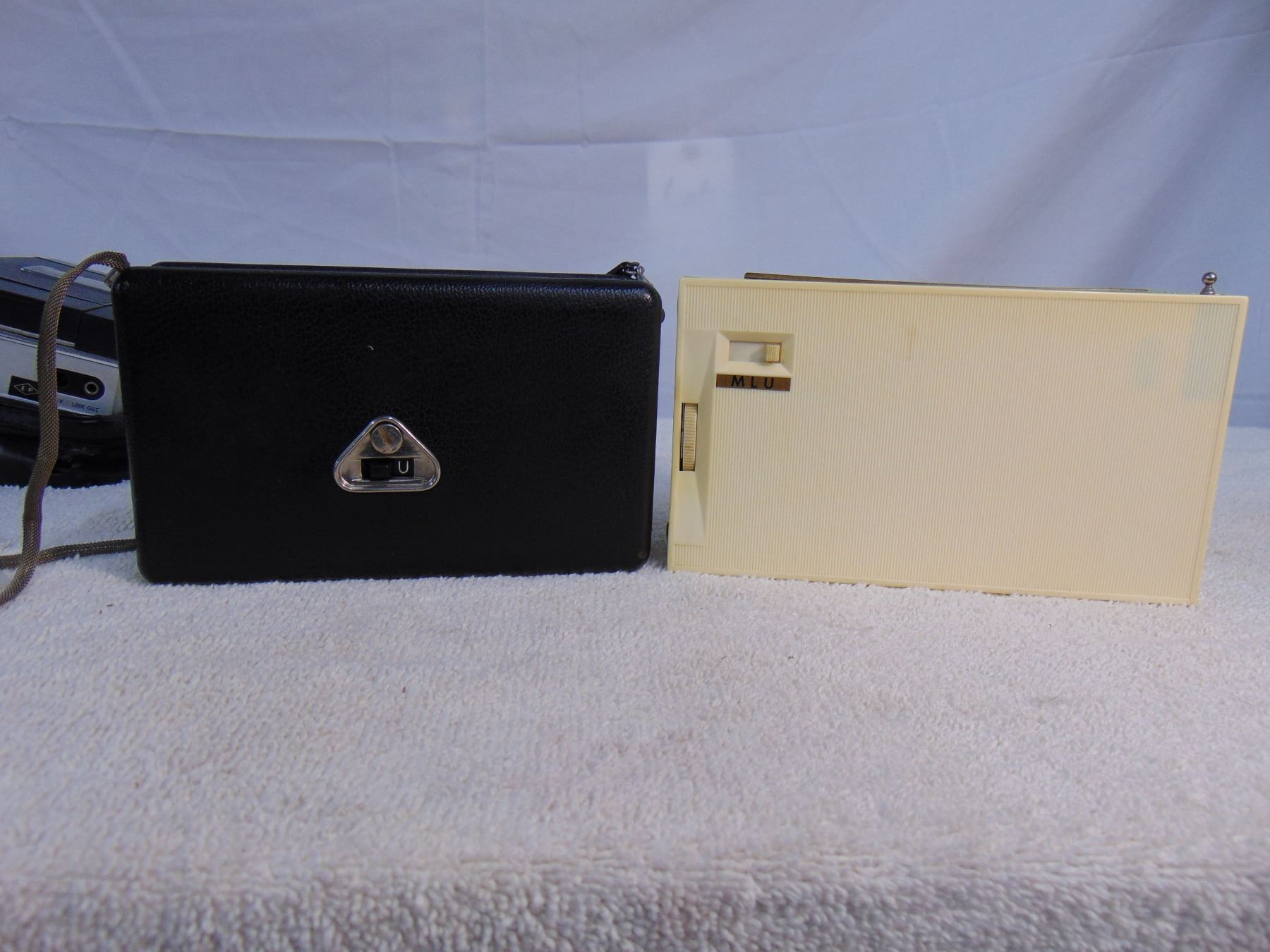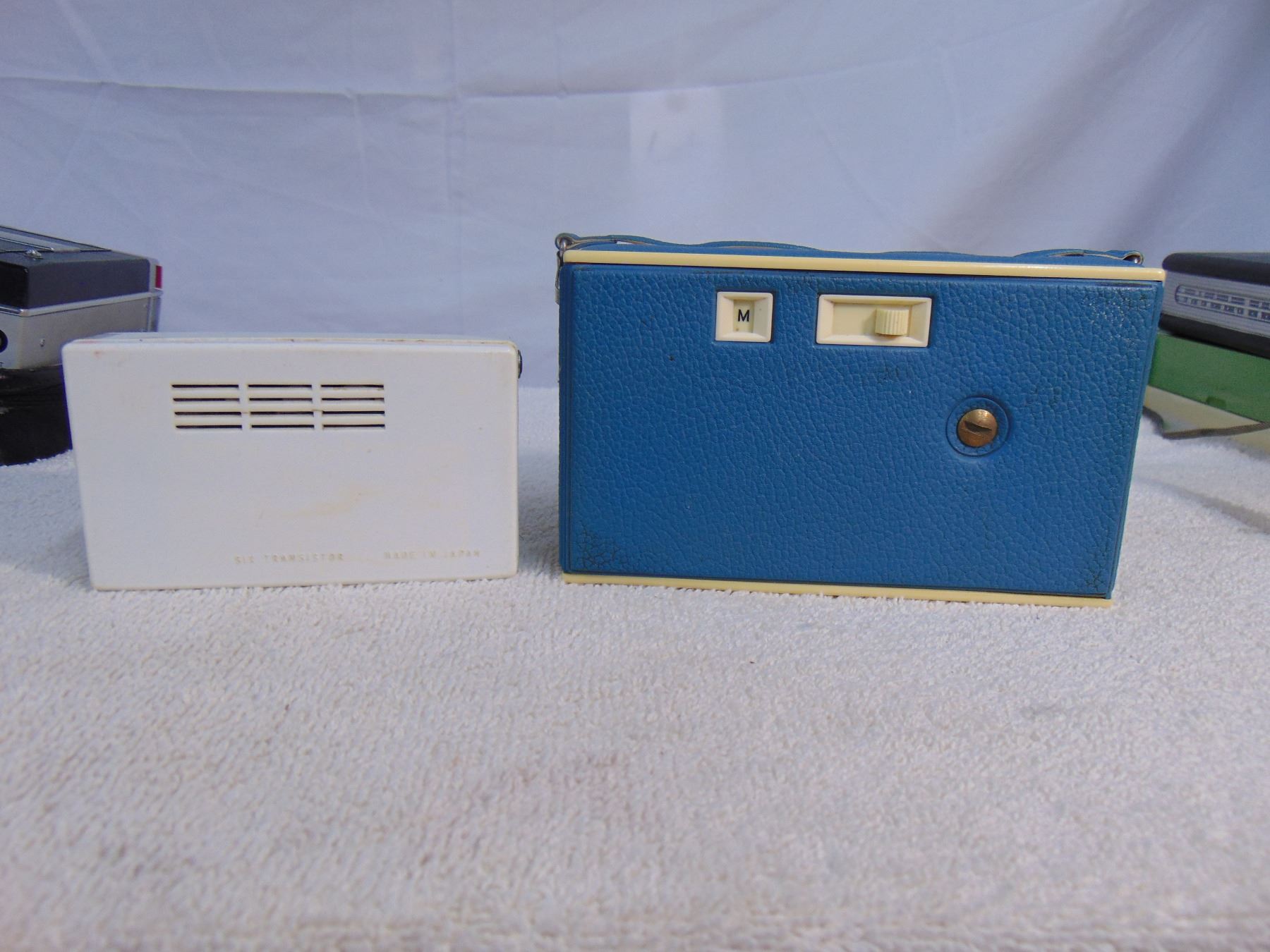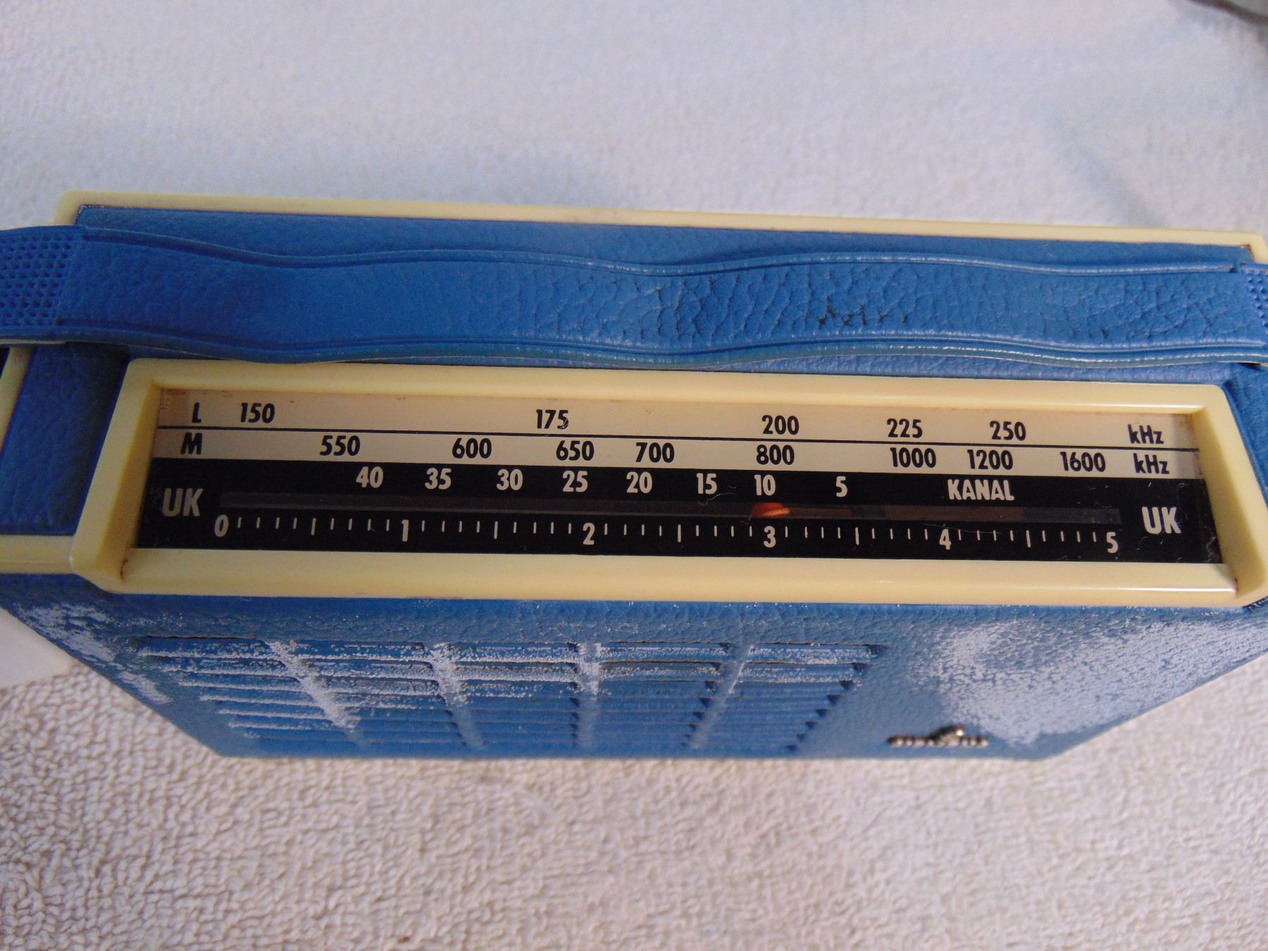 Four vintage transistors including Philips, Airline, Siemens, and Graetz. One Panasonic cassette portable; all very nice