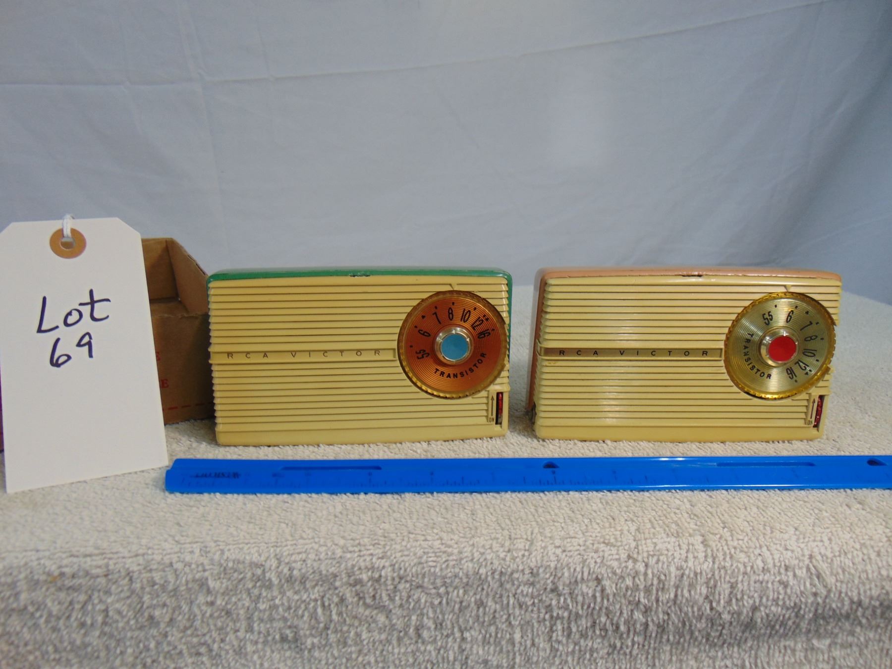 Two early RCA transistors; model 8BT-8FE and 8BT-7LE; both nice; early