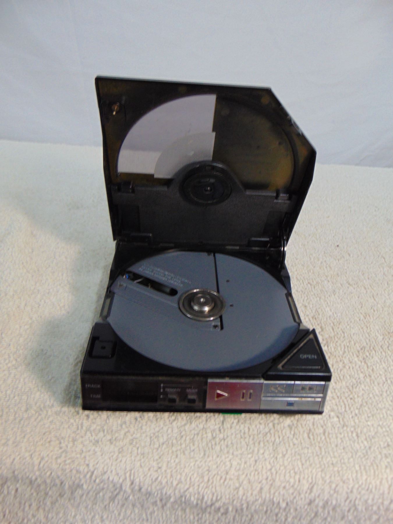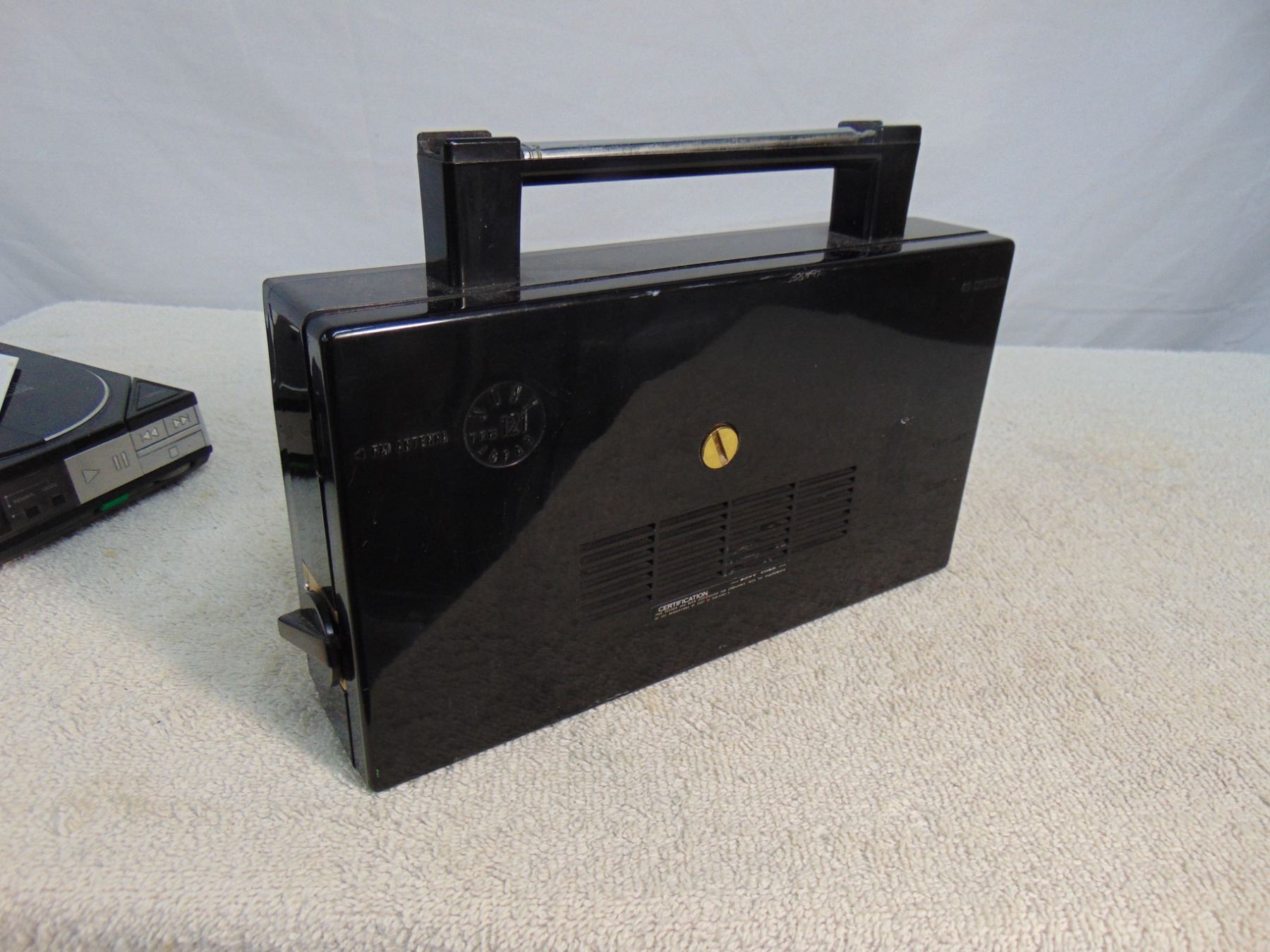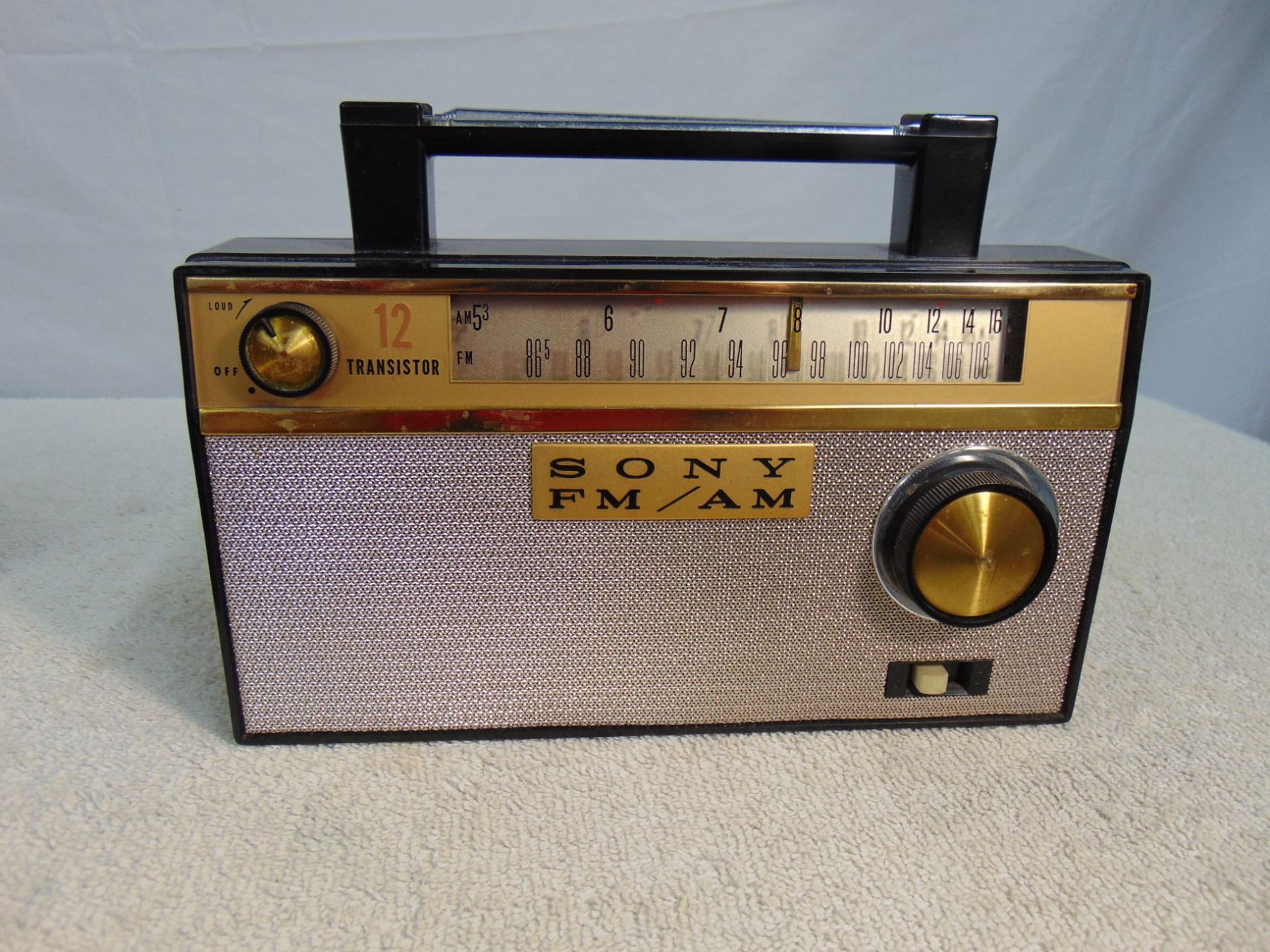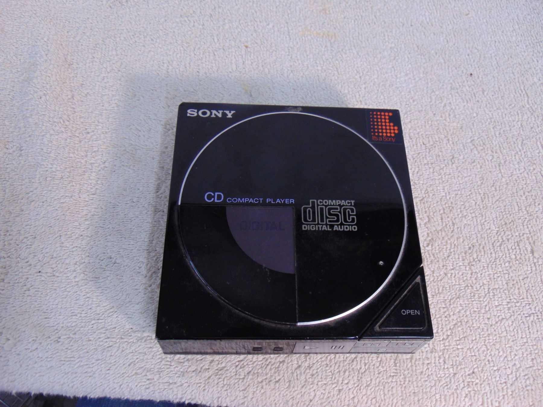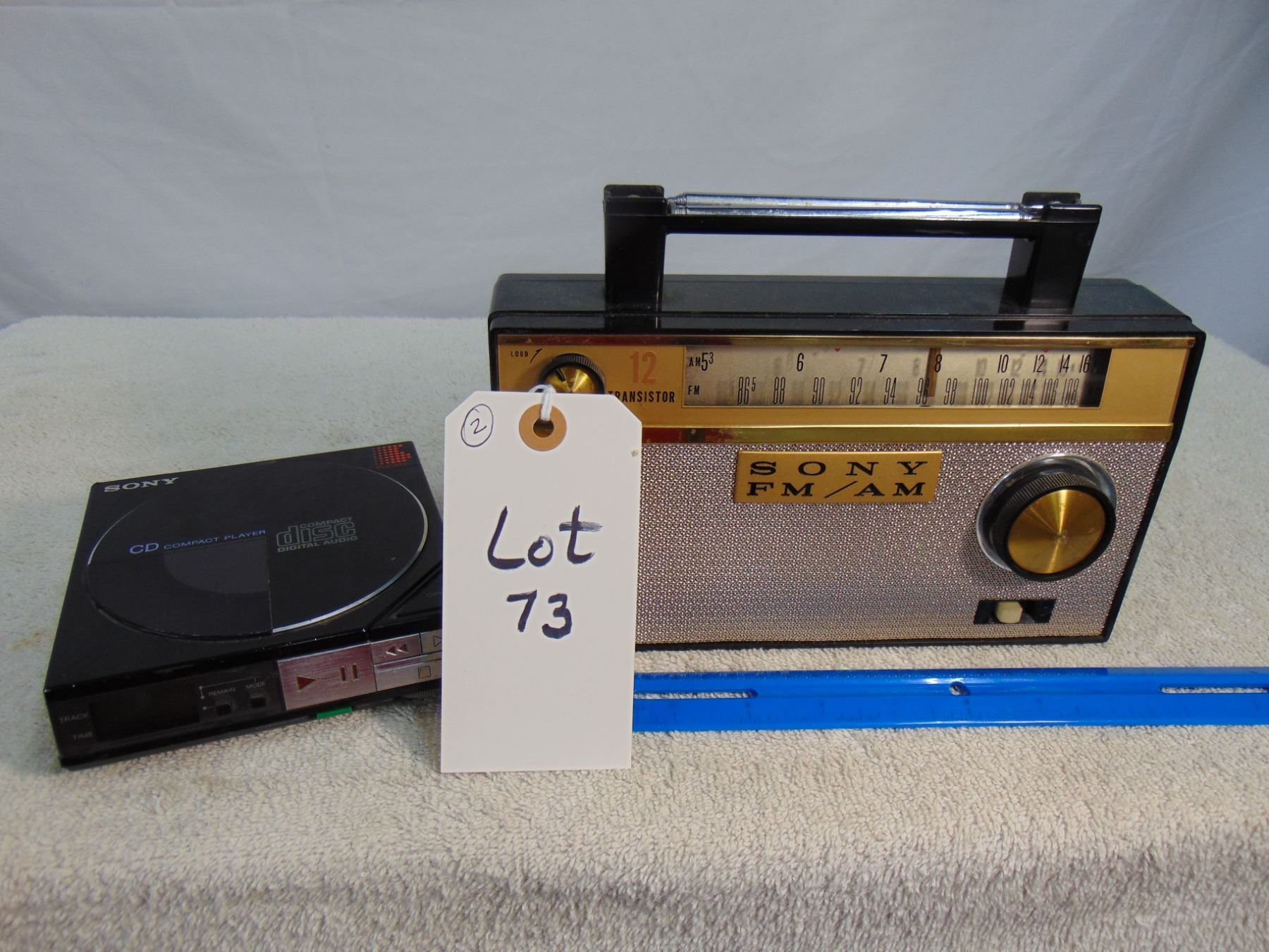 Two Sony: 1) AM/FM, model TFM-121; 2) compact disc player, 1st portable CD player