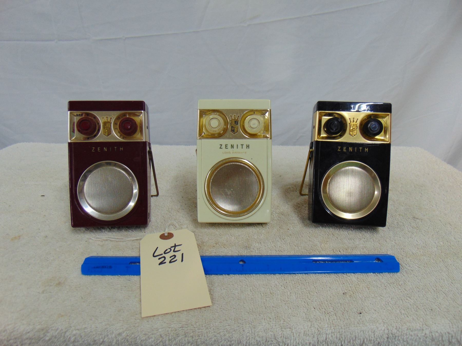 Flat of 3 vintage Zenith transistors; all Royal 500; no cracks; very nice