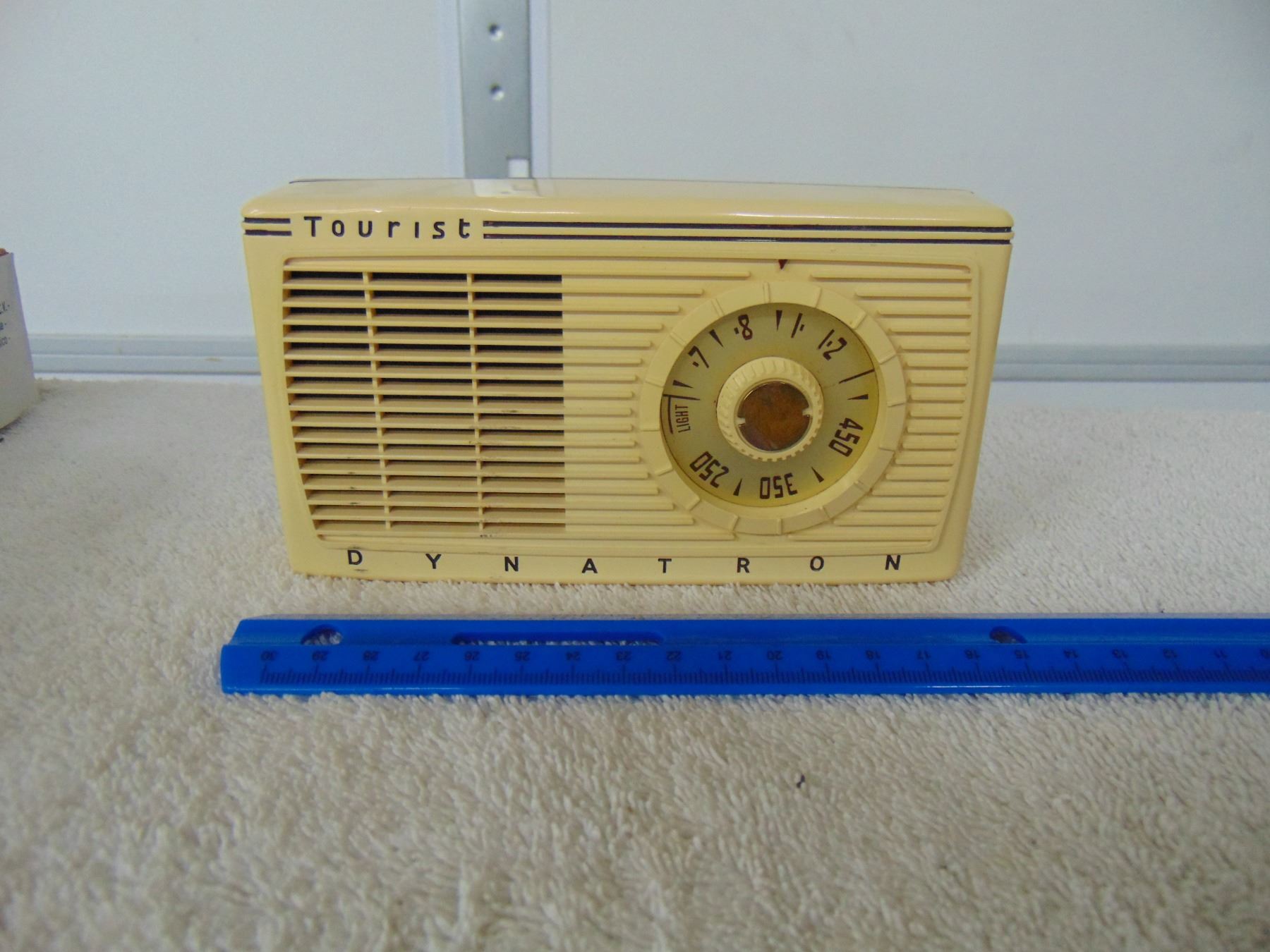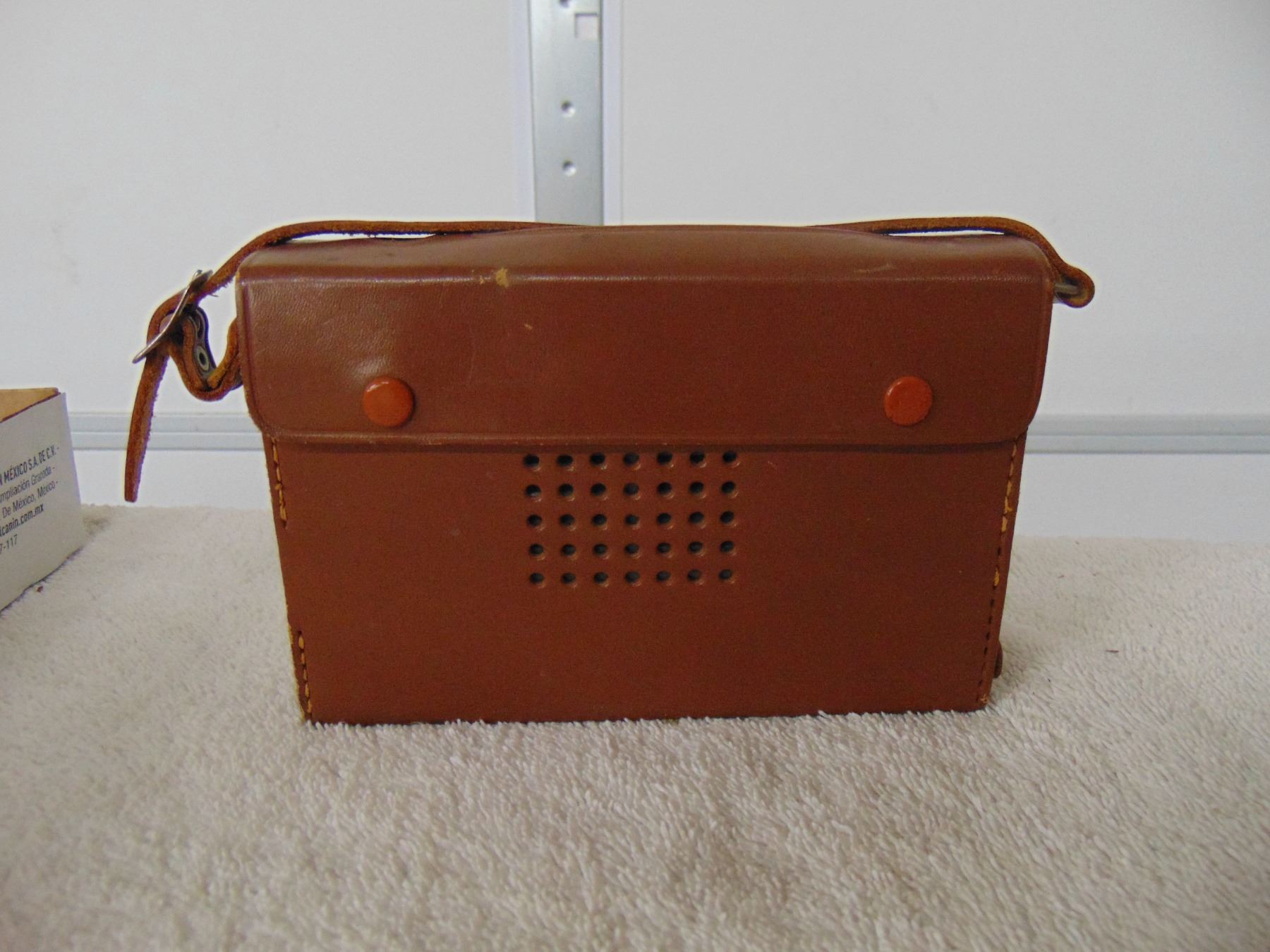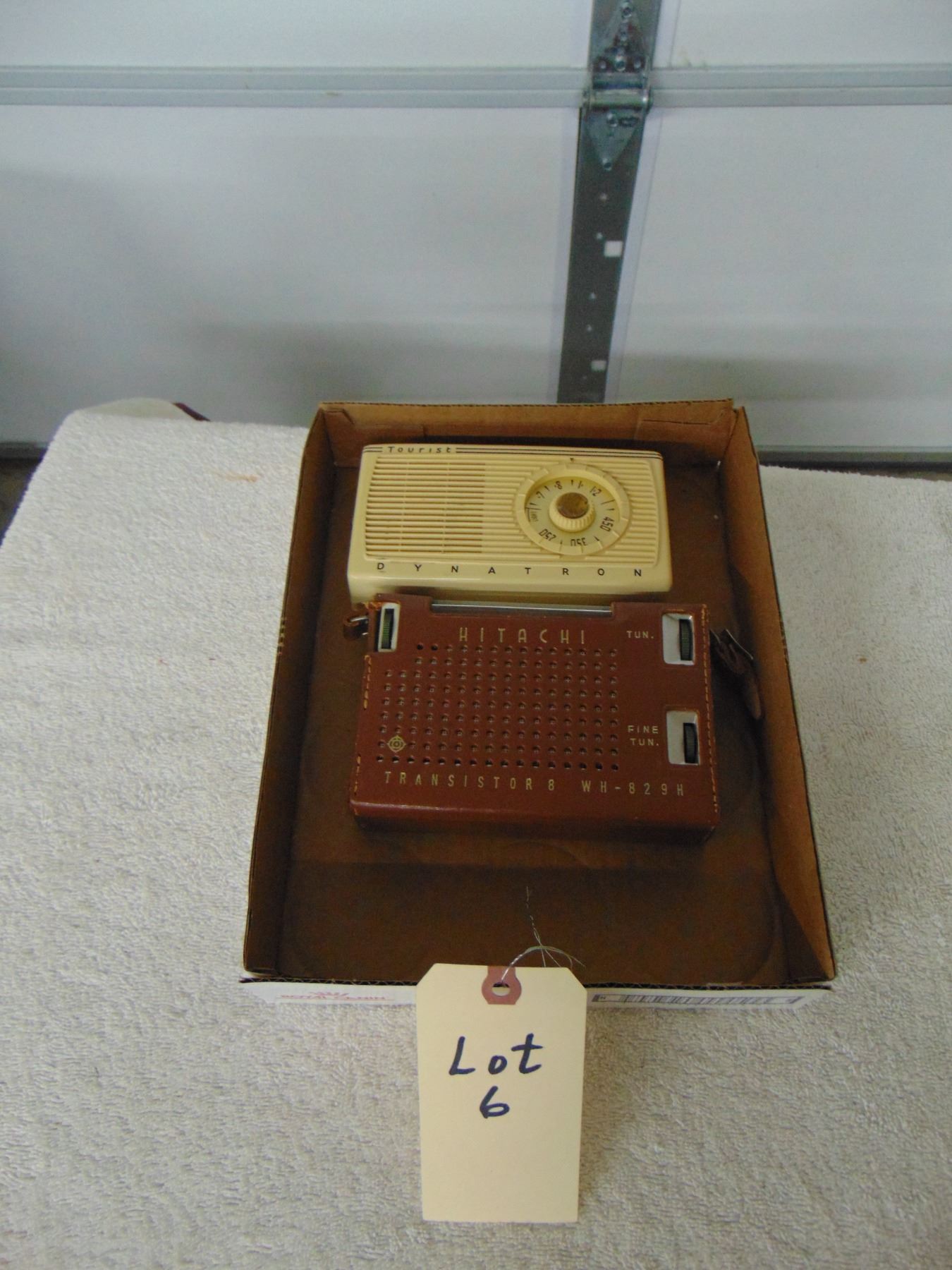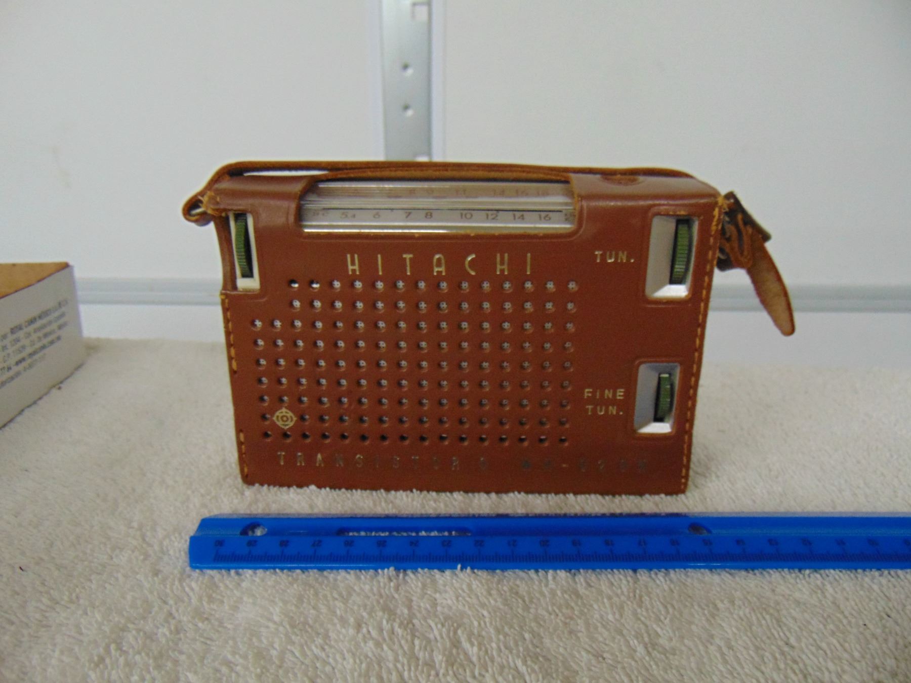 Two vintage transistor radios; Dynatron Tourist; Hitachi model WH-829H two bands; both in excellent condition, one with leather case