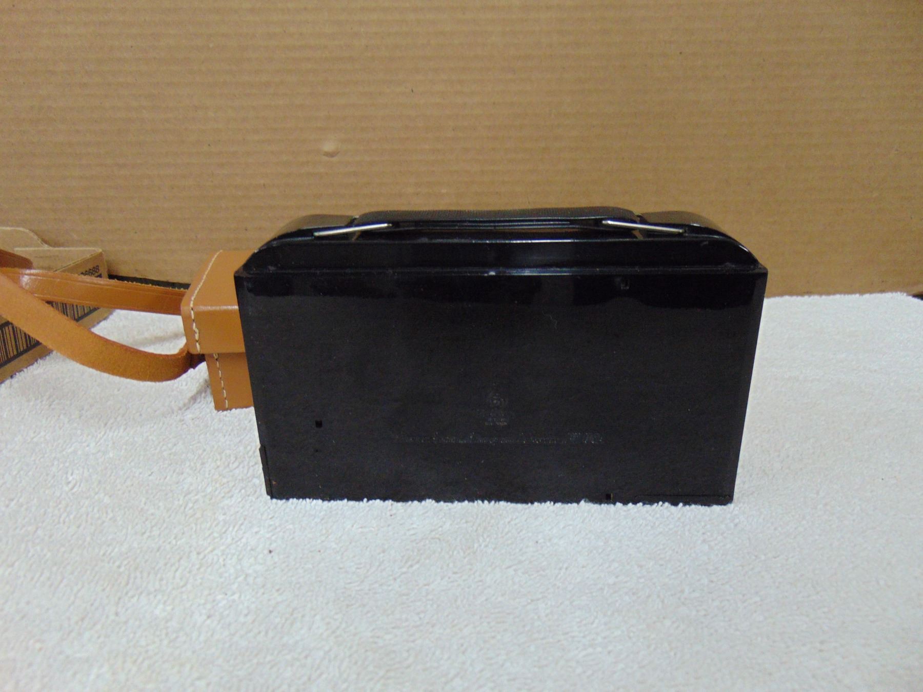 Three vintage transistor radios; Emerson 7, with rare leather case, crack on side of radio; Motorola, like new; Philips, three bands, in nice case