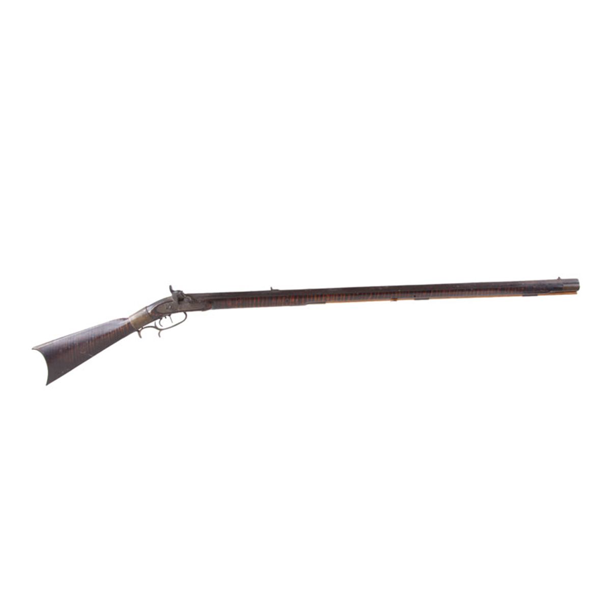 Transition Kentucky Rifle to Plains Rifle About .36 Cal, SN:NVSN, Circa 1840-50s, artificially stripped stock, old brass repair to wrist, good condition and an attractive Mountain Man Era American rifle. From the "Going West" period.About .36 Cal, SN:NVSN, Circa 1840-50s, artificially stripped stock, old brass repair to wrist, good condition and an attractive Mountain Man Era American rifle. From the "Going West" period.