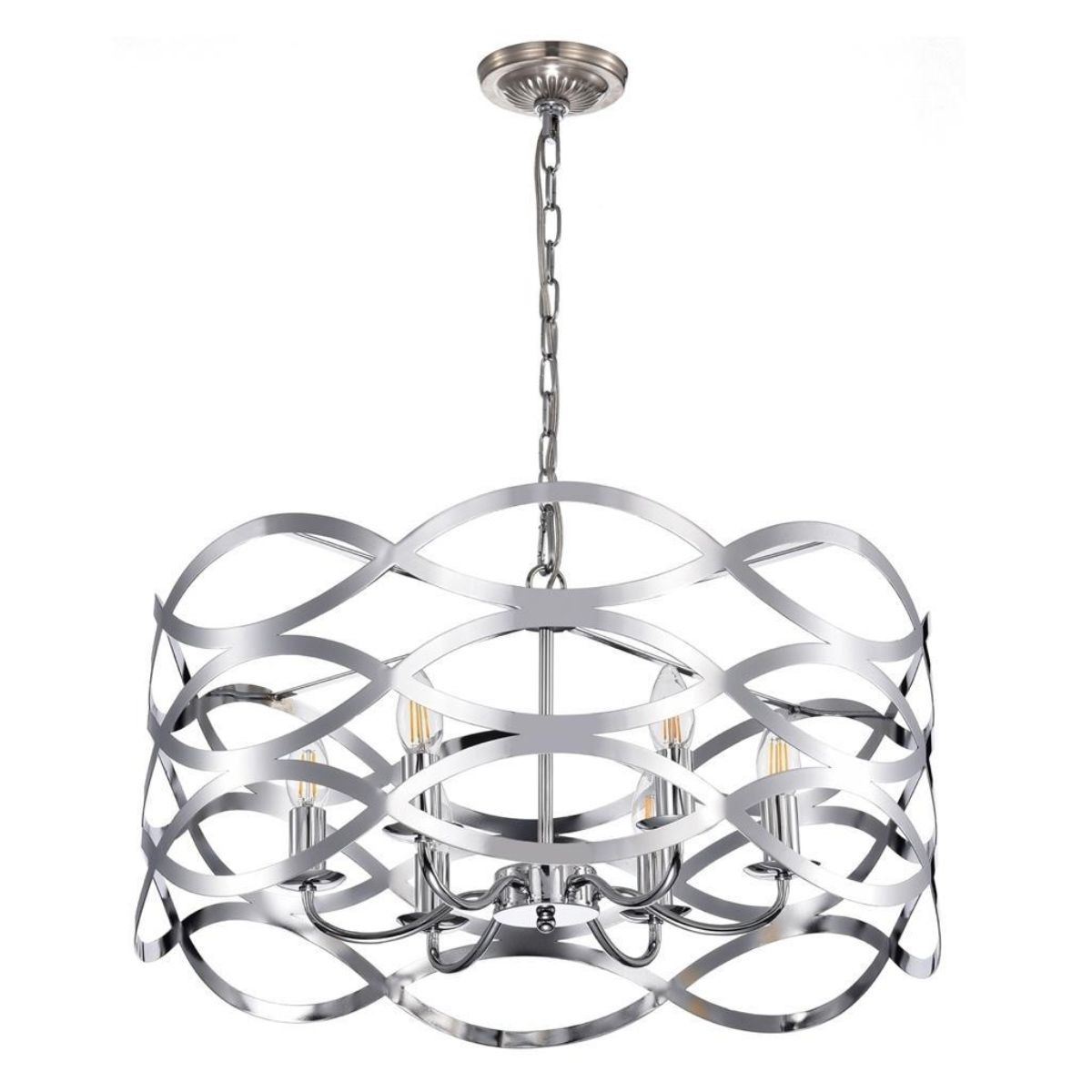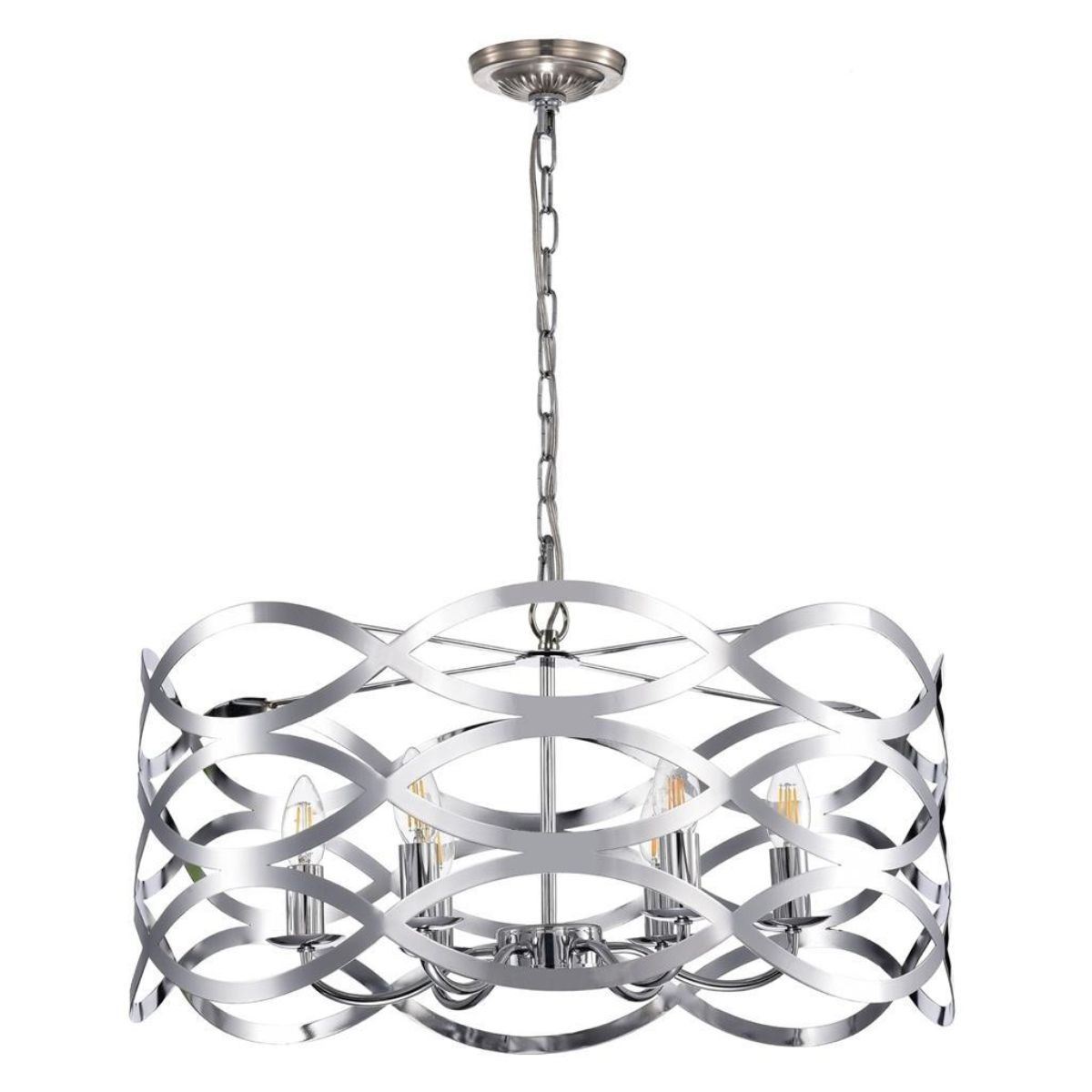 Transitional Modern style chrome over metal hanging pendant light. 24" W X 11" W. 7lbs.Â