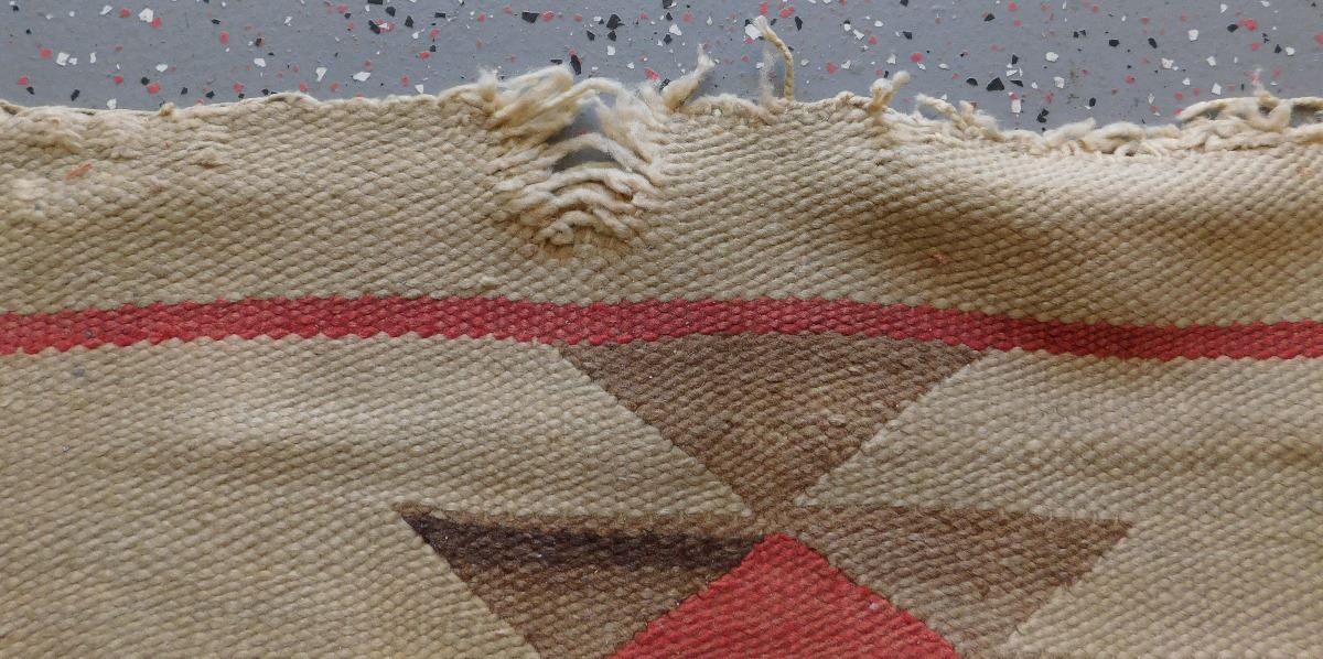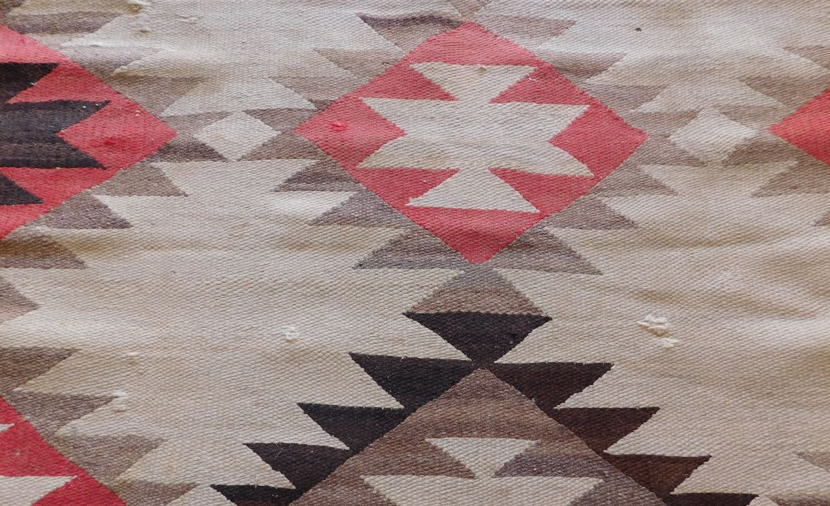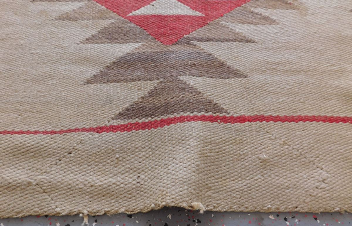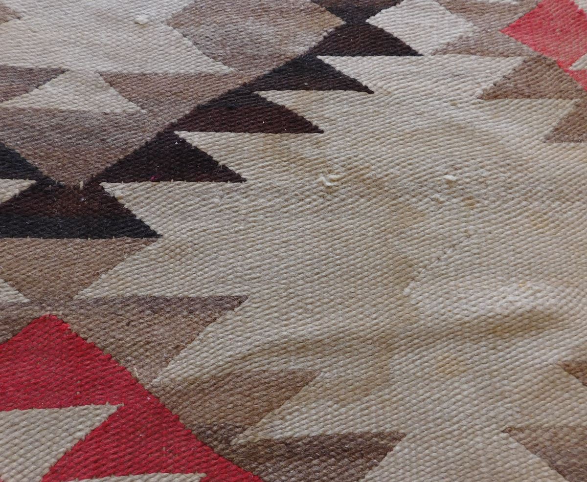Transitional Navajo Weaving, circa 1890s. Made of wool and dye, this item measures 67" x 41". From New Mexico. No borders on this old weaving. Condition: Fair, some wear, see images. Shipping: $35.00.