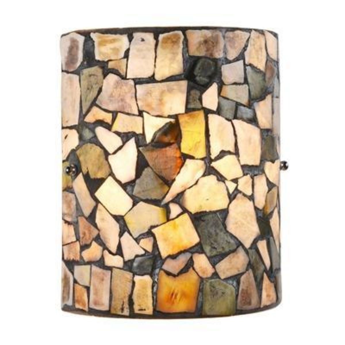 A transitional-style semi-circular shaped mosaic wall sconce, hand-crafted from over 100 pieces of stone in green & gray colors. 10" H X 8 1/2" W. 3.3lbs. ***** this lot is for 1 sconce but available as a pair, set of 4 or more per request. Â