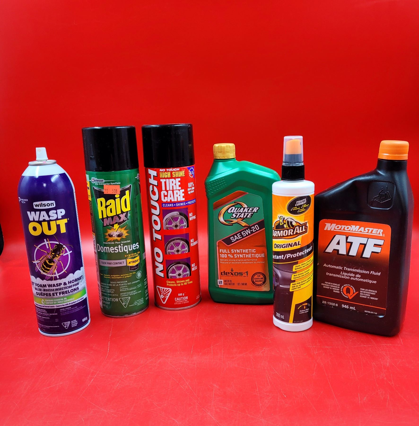 Transmission Fluid, Motor Oil, Protectant, Tire Cleaner, & Bug Killer