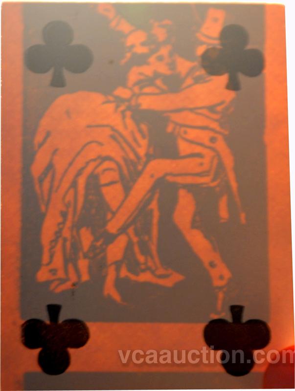Transparent Playing Cards - Cards reveal hidden images (dancers) when held up to the Light. Very small tear on ace of spades, otherwise in good condition. Deck is complete w/ joker; no box. Transparent Playing Card Co., New York, c1880 (Hochman code: O21).