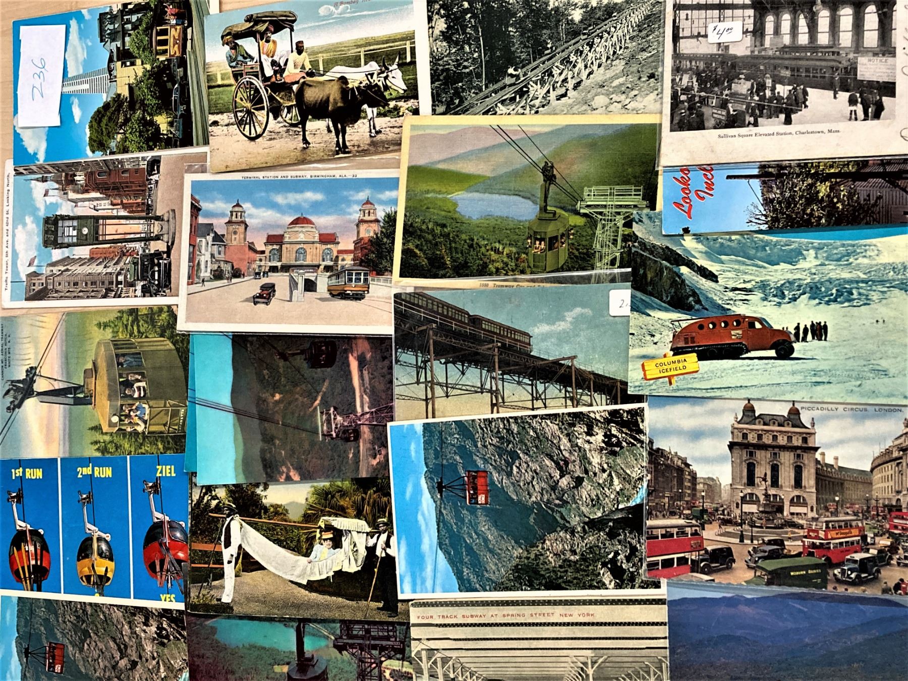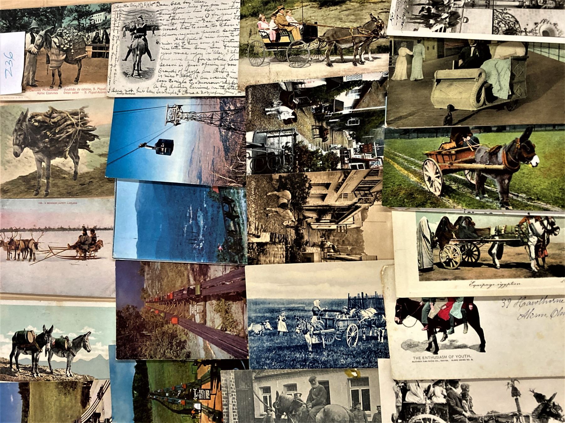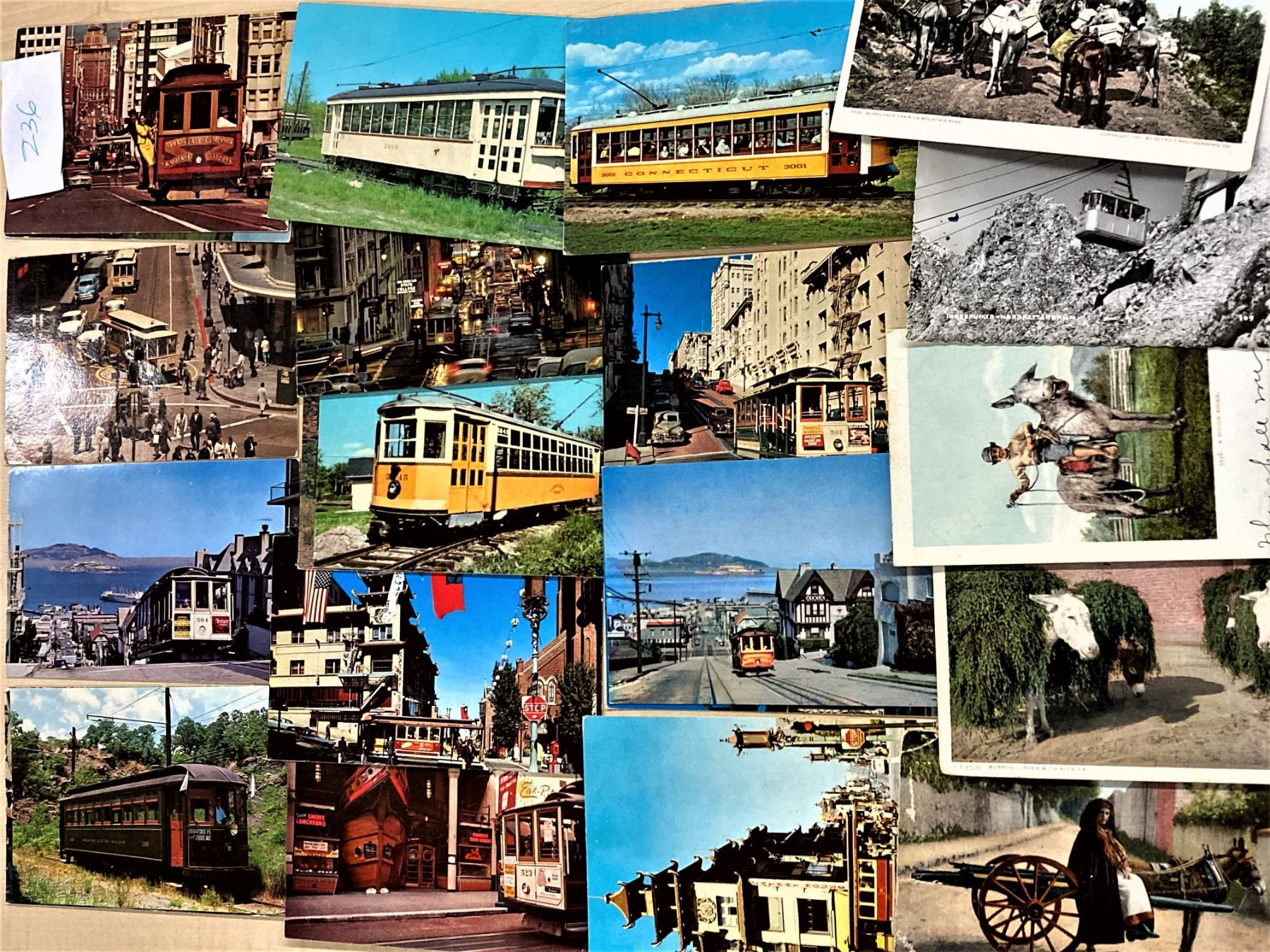 Approx. 225 cards, mostly transportation related. Trolleys, Donkey Wagon, Drawn Wagons, Trains & more. Early to some continental size. Pictures are just a sample from the lot.
