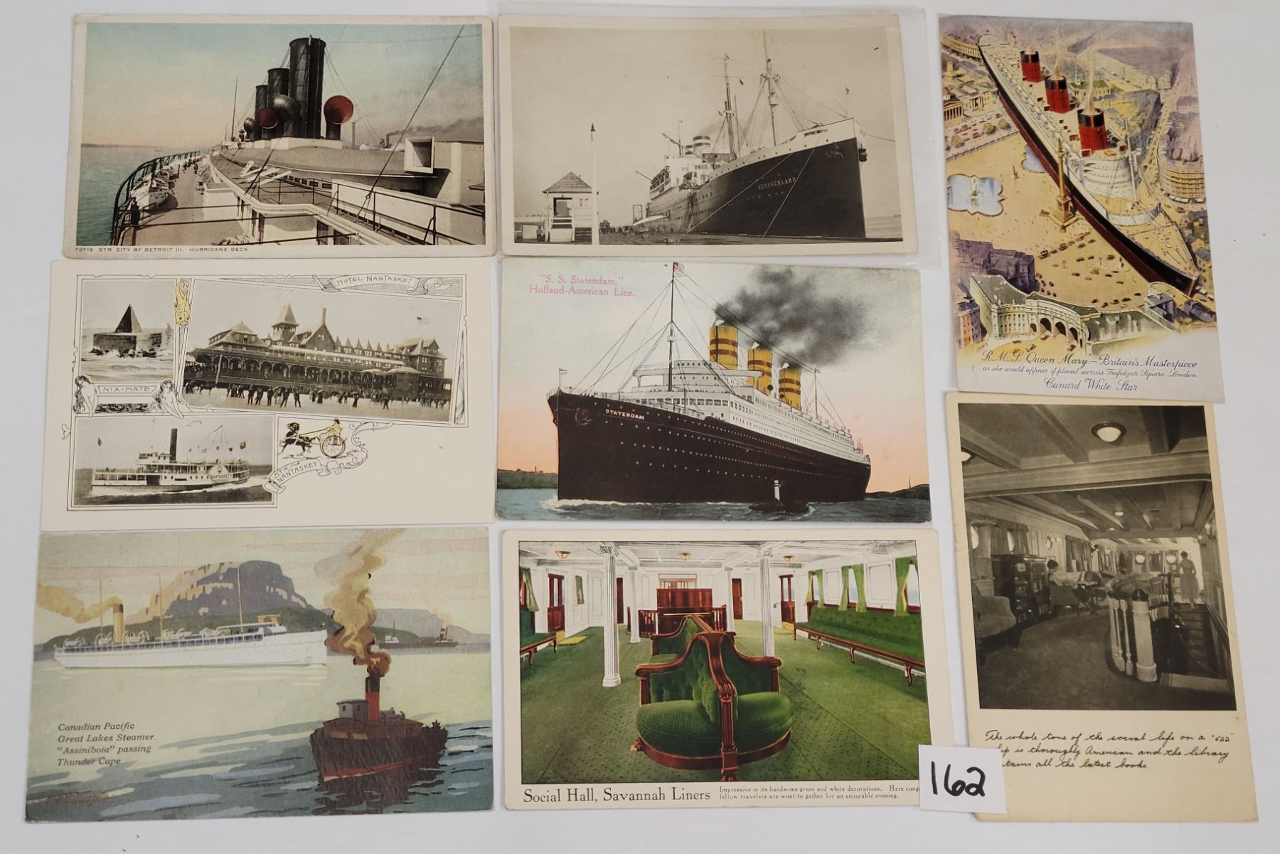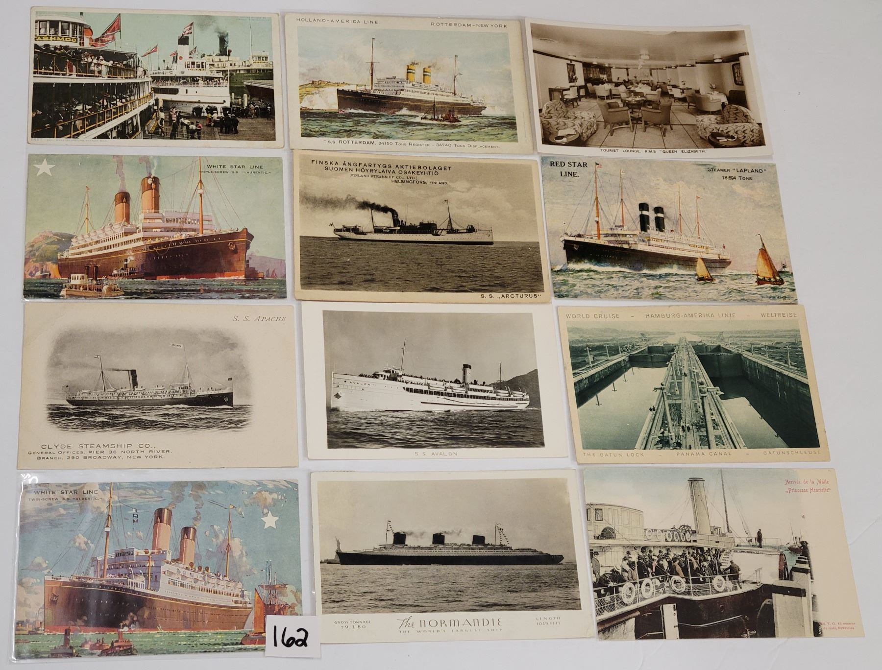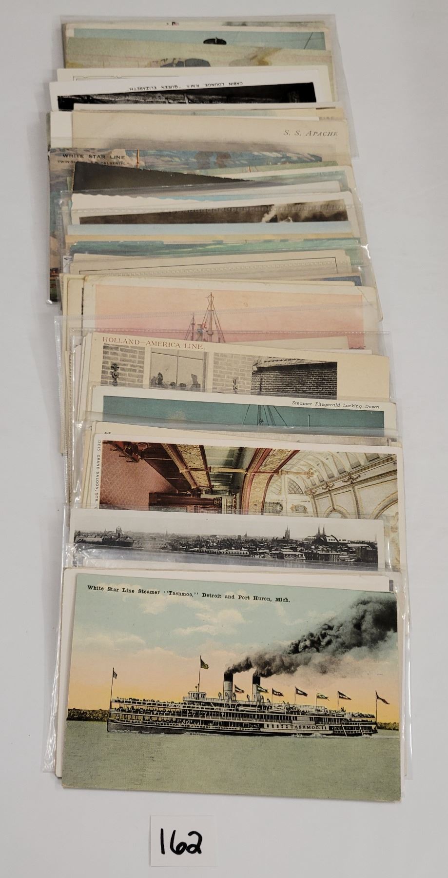 Approx. 65 ship postcards. Steamers, Ocean Liners, etc. Different lines. Mostly early. Some real photo.
