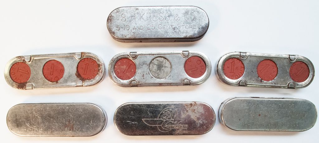 A lot of 7 transportation token dispensers, some with 1c tokens in them. A/C Transit and East Bay Transit Company, one from S.H. Kress & Co. (5,10 & 25 cent store).City: East BayCounty: State: CA