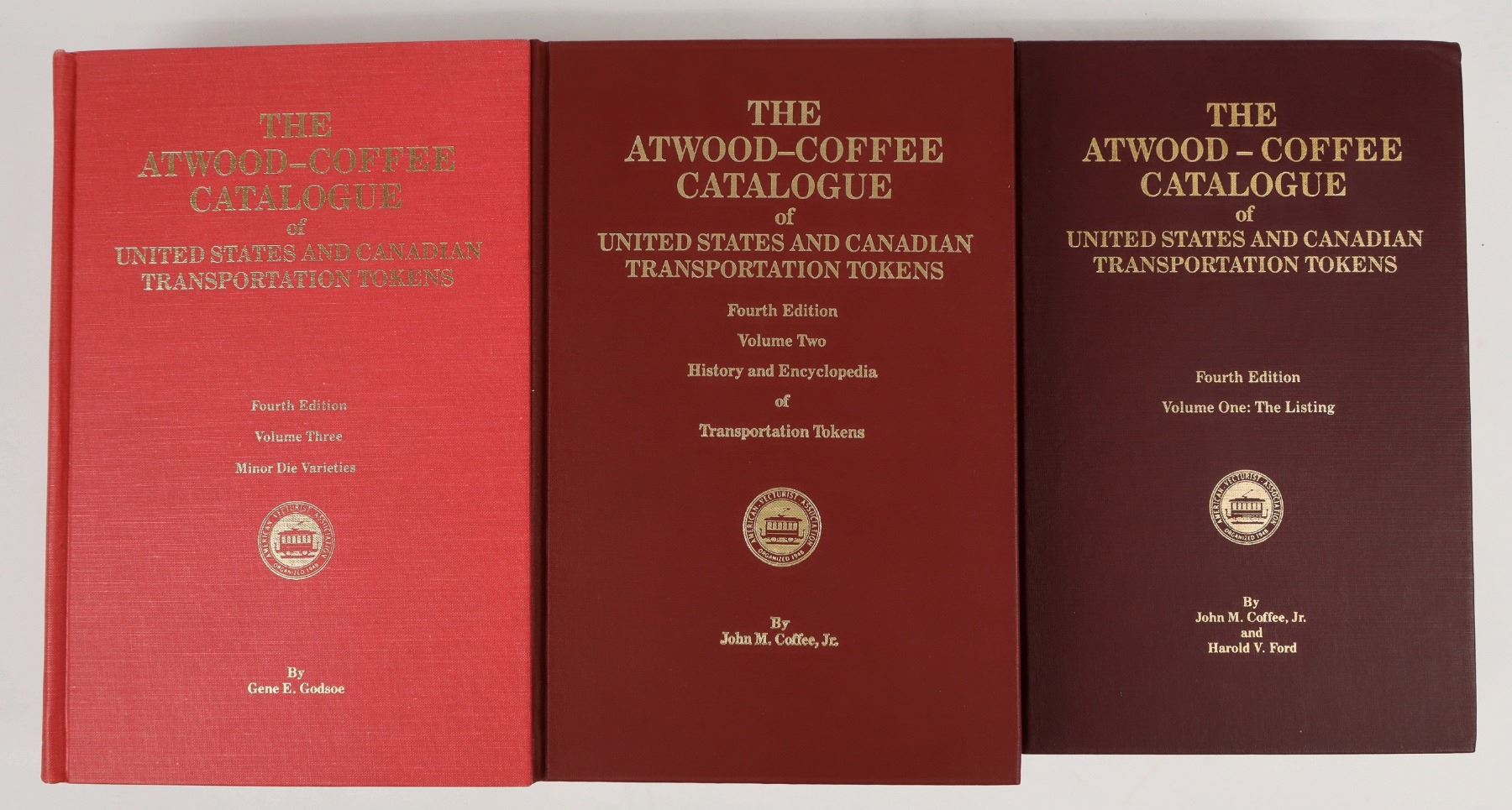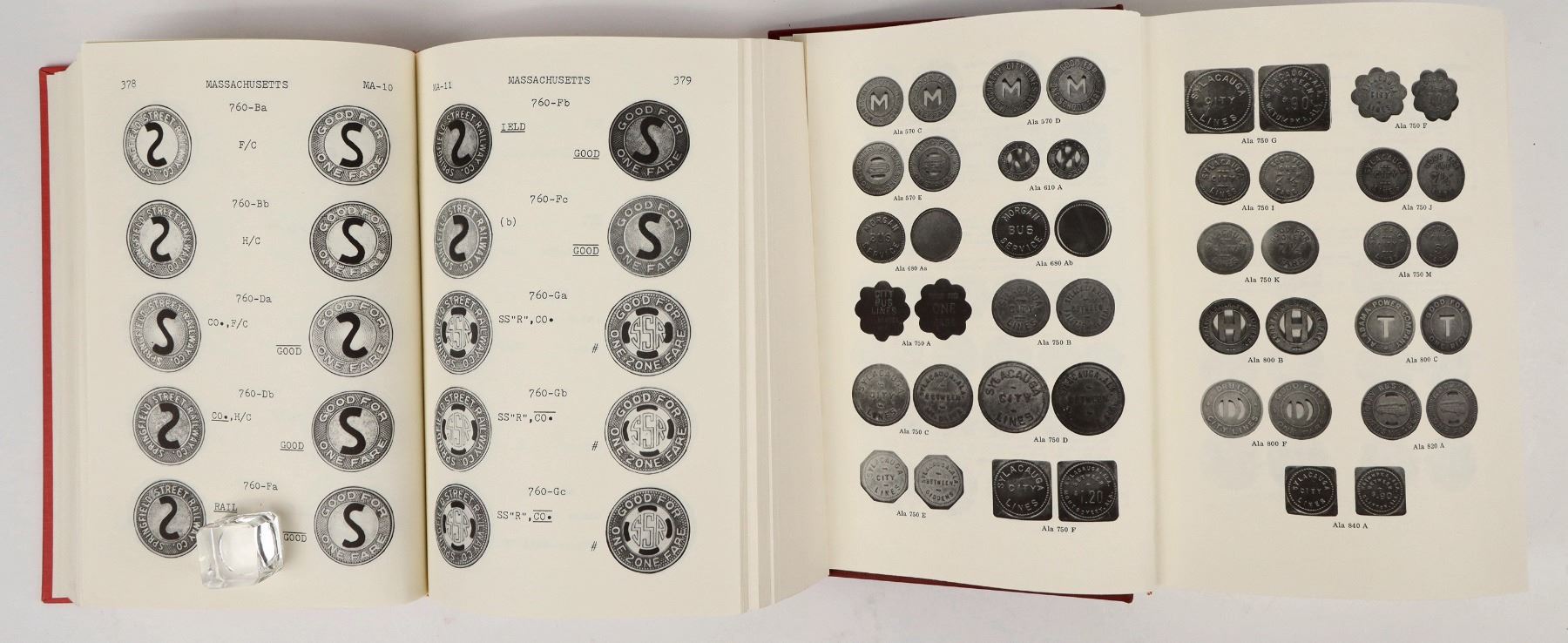 This is the rarely seen complete three volume set on US transportation tokens. Volume 1 is the listing of the tokens. volume 2 is the history and encyclopedia of the tokens; volume 3 is "minor die variants".