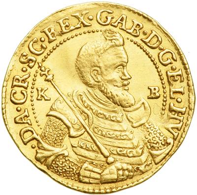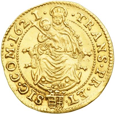 Transylvania. Ducat, 1621. Fr-358; Resch-64; Huszar-335. Gabriel Bethlen, 1613-1629. Kremnitz mint. Armored bust right. Reverse: Madonna, with child. Rare. Extremely Fine.