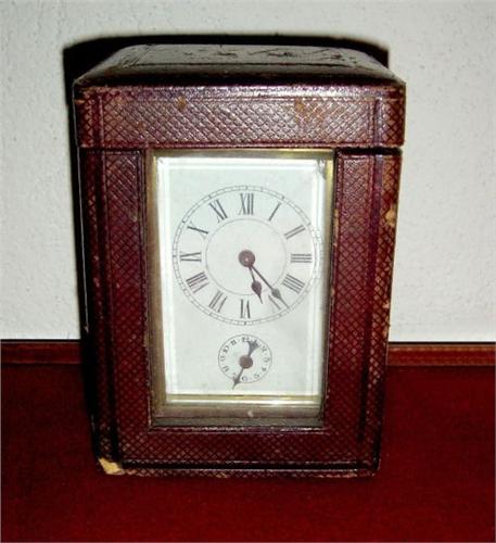 Réveil de voyage dans son étui, cadran émail, env. 1900