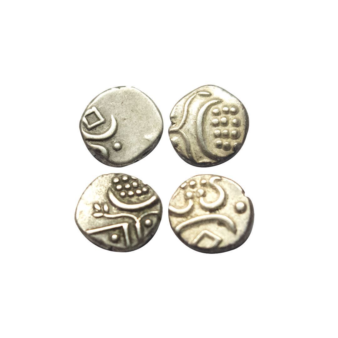 Travancore, AnizhamThirunalMarthandaVarma (ME 904-933 / 1729-1758 AD), Silver Chuckram (2 coins), Obv: Crescent with diamond and pellets, Rev: 12 pellets above a crescent. (KM # 1).