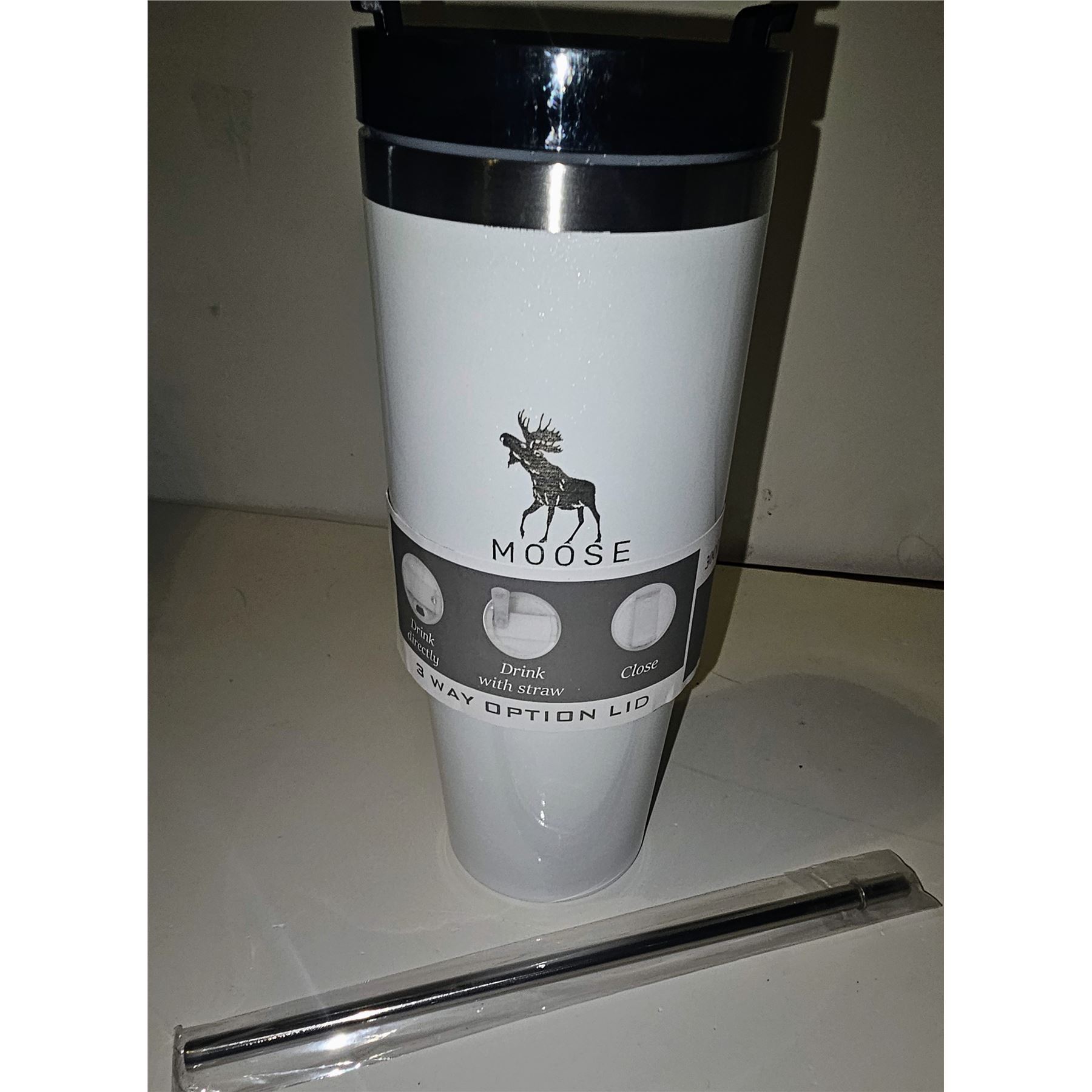 Insulated mug with 3-way lid for versatile drinking options, includes a drinking straw, new.
