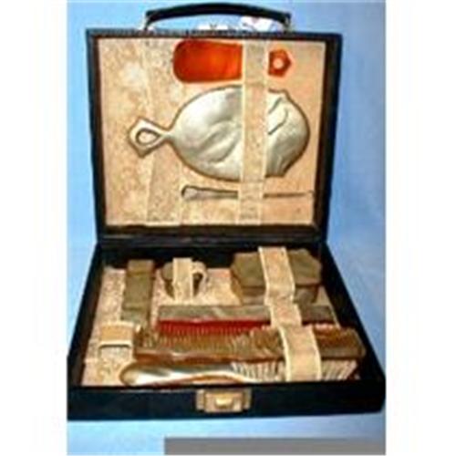 This vintage Travel Set is really a find. It is filled with lots of classic personal care items. This case is 9 inches high and it is sold as is(not complete). To purchase this set please contact MIndi by e-mail at