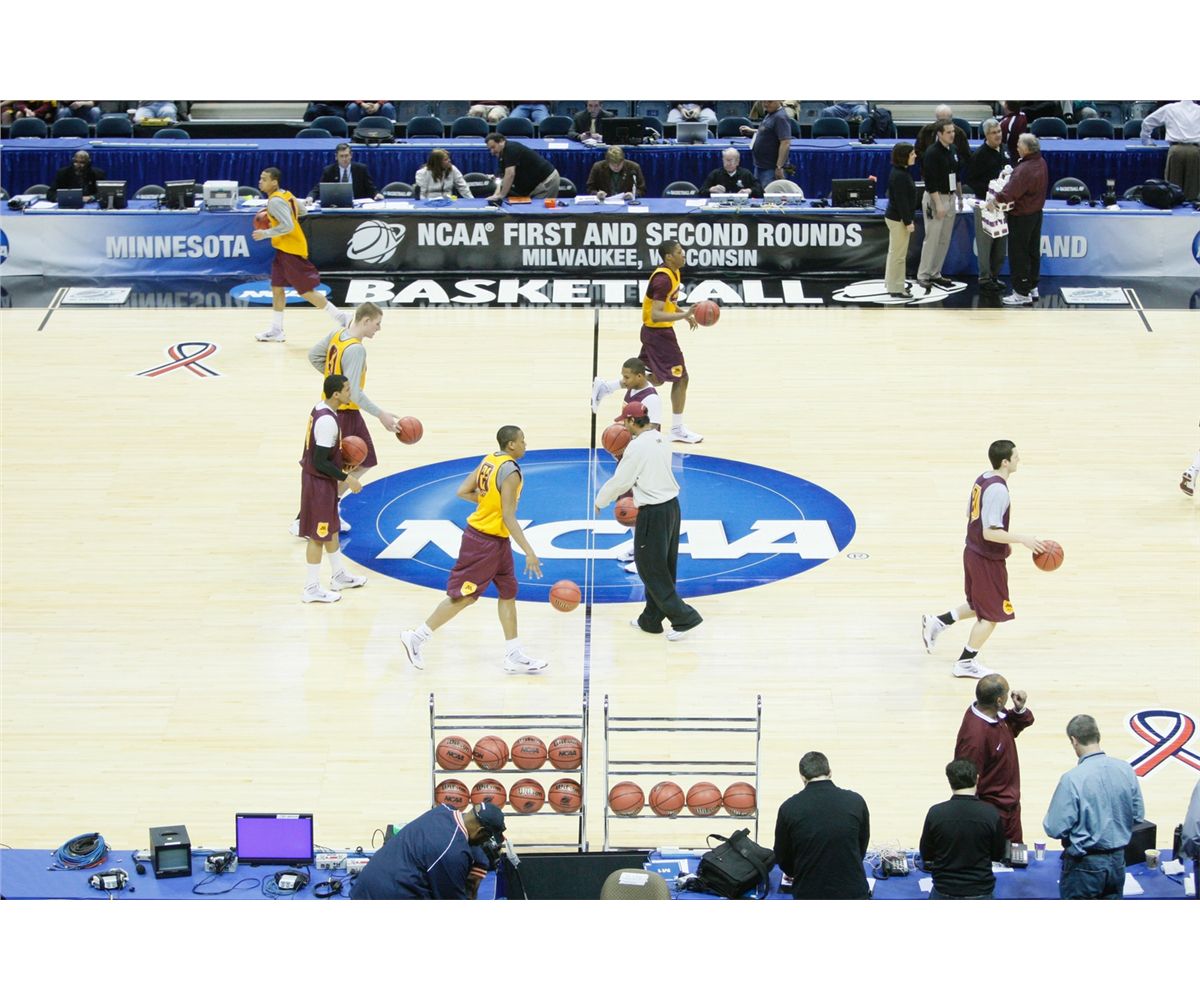 This trip package includes an opportunity for two people to travel with the Golden Gopher Basketball team to the first round of post-season play! Experience March Madness from a whole new perspective!. Included in the trip will be charter transportation for two (plane/bus) with the team, 1 hotel room at the team hotel, and 2 game tickets behind the Golden Gopher team bench. Meals are not included.
