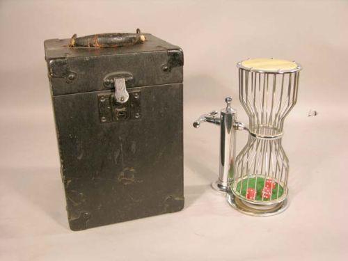 Traveling Chuck-A-Luck made by Mason & Co. Newark, NJ. Nickel plated brass in original carrying case - like new cond.