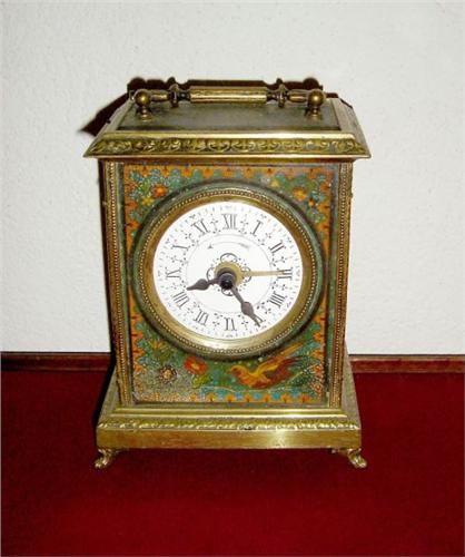 Réveil de voyage en laiton et peinture à motifs d'oiseaux, cadran émail, env. 1900