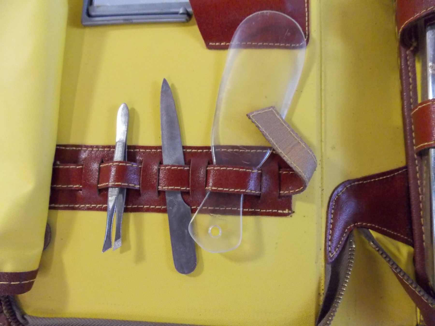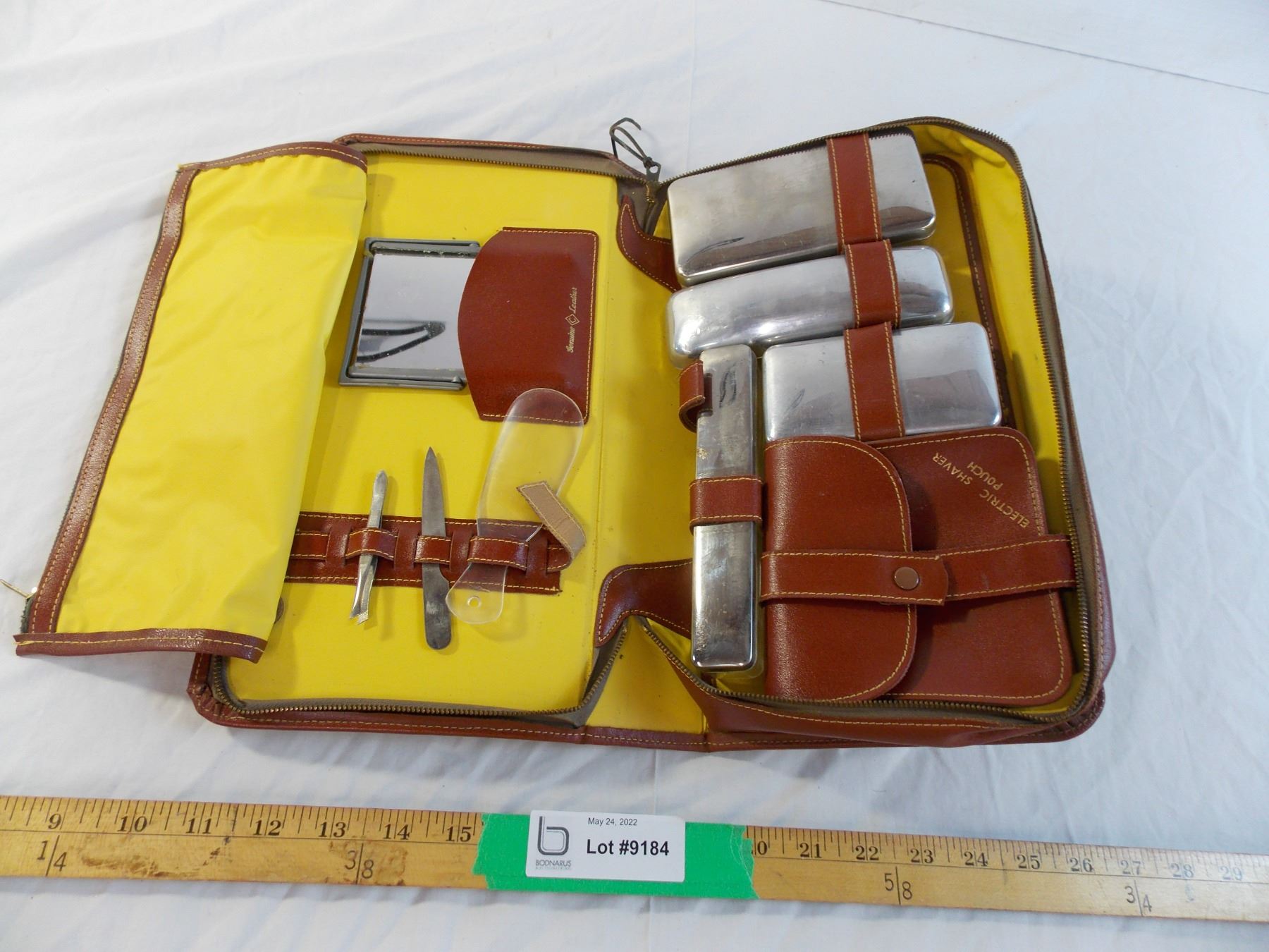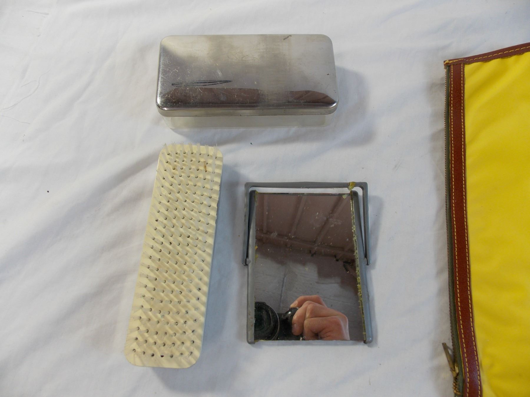 Travelling shave kit (empty) shoehorn, brush, mirror, toothbrush holder, etc (empty pouch and containers)