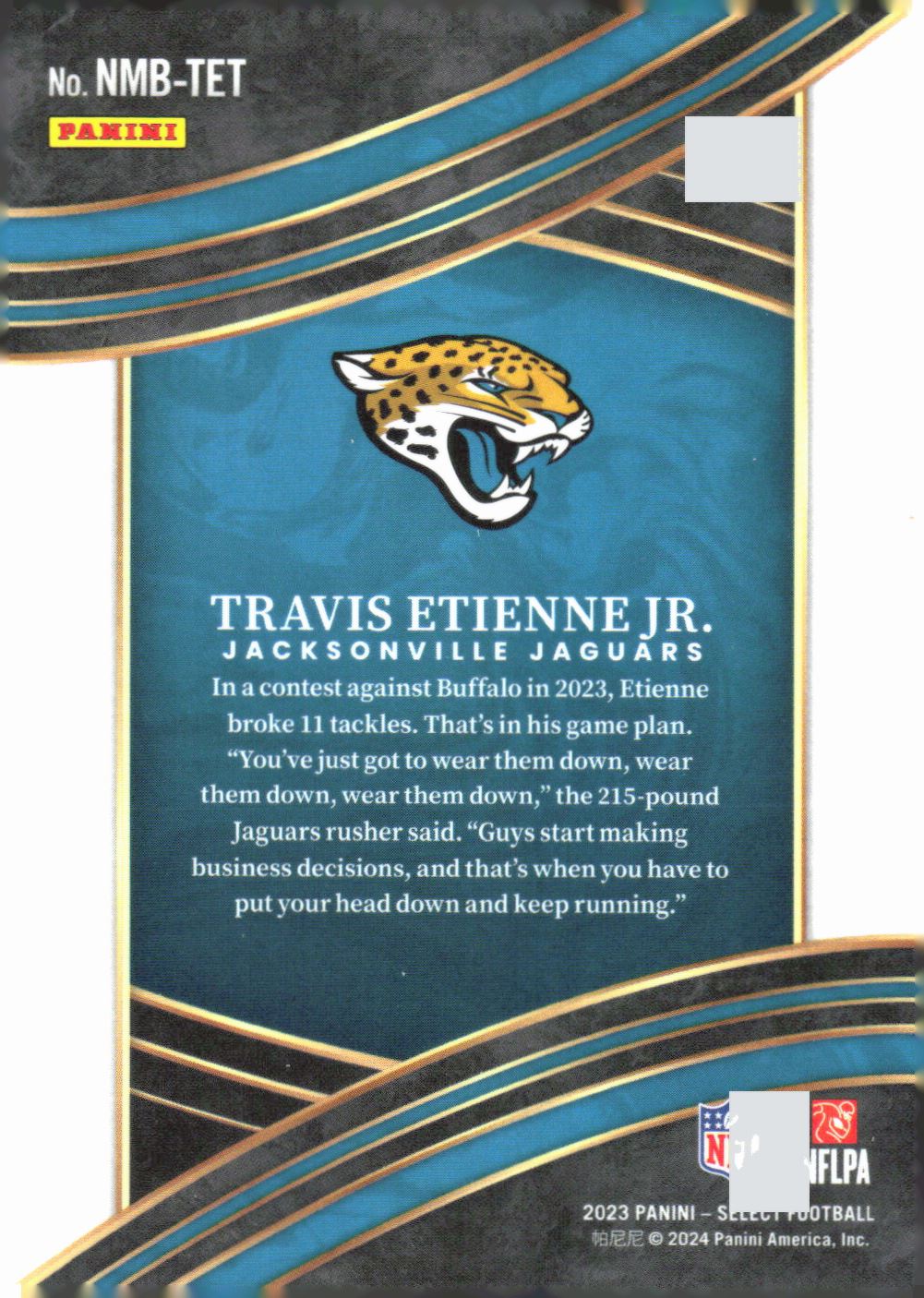 Travis Etienne, Jr. Numbers Insert Panini Select Jaguars