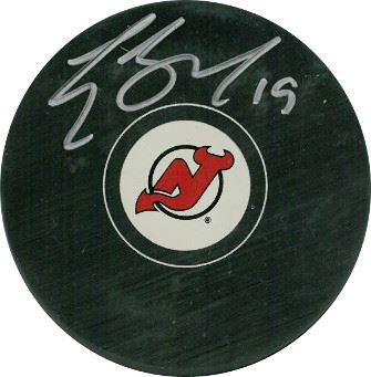 Travis Zajac is the alternate captain for the New Jersey Devils of the NHL. Zajac wears the "A" during home games (his teammate Andy Greene wears the "A" during away games). Zajac was selected 20th overall in 2004 by New Jersey, the organization he has played his entire NHL career with. On January 16, 2013, Zajac re-signed with the Devils, committing to an eight-year, $46 million contract. On March 31, 2014, he recorded his first career hat-trick against Florida Panthers. Travis Zajac has hand signed this New Jersey Devils Hockey Puck. Leaf Authentics Hologram and Certificate of Authenticity from Athlon Sports.