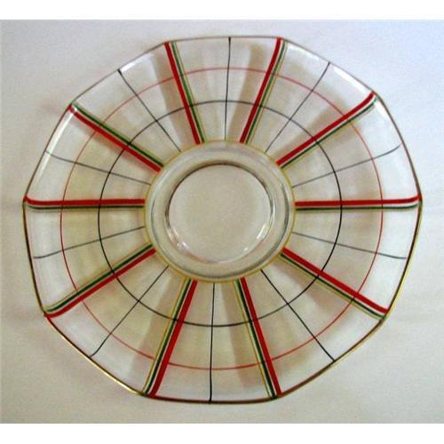 <tr><td>Title:Tray Art Deco Glass Painted Colorful </td></tr>