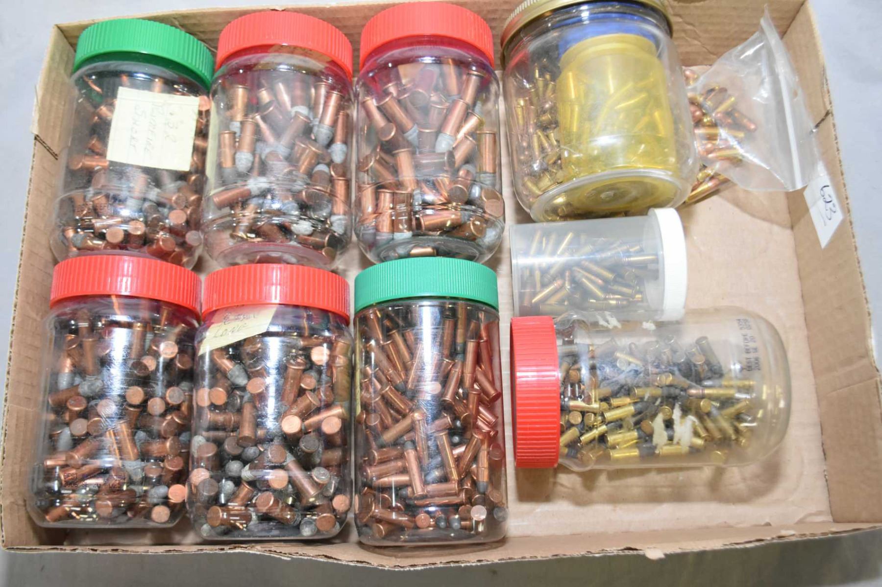 Tray Lot : 1/2 Jar .32 RF Short Cal Ammo - 1 1/2 Jar .32 RF Long Cal Ammo - 1/2 Jar .38 RF Short - 1/2 Jar .38 RF Long - 2/3 Jar .22 WRF - .22 Short, Long, Long Rifle - Small Bag .25 Auto Ammo etc