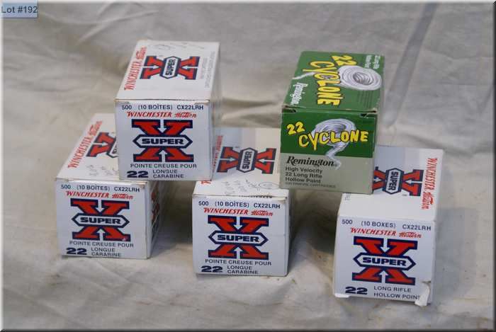 Tray Lot : 4 Bricks Win Super X .22 LR Cal Ammo - 1 Brick Remington .22 LR Cyclone Hollow Pt Ammo