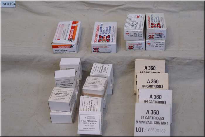 Tray Lot : 6 Boxes ( 50 rnds per) .9 MM Ammo - 12 Boxes ( 25 rnds per) .9 MM ammo - 3 & Part Boxes (64 Rnds per) .9 MM Hard Point -