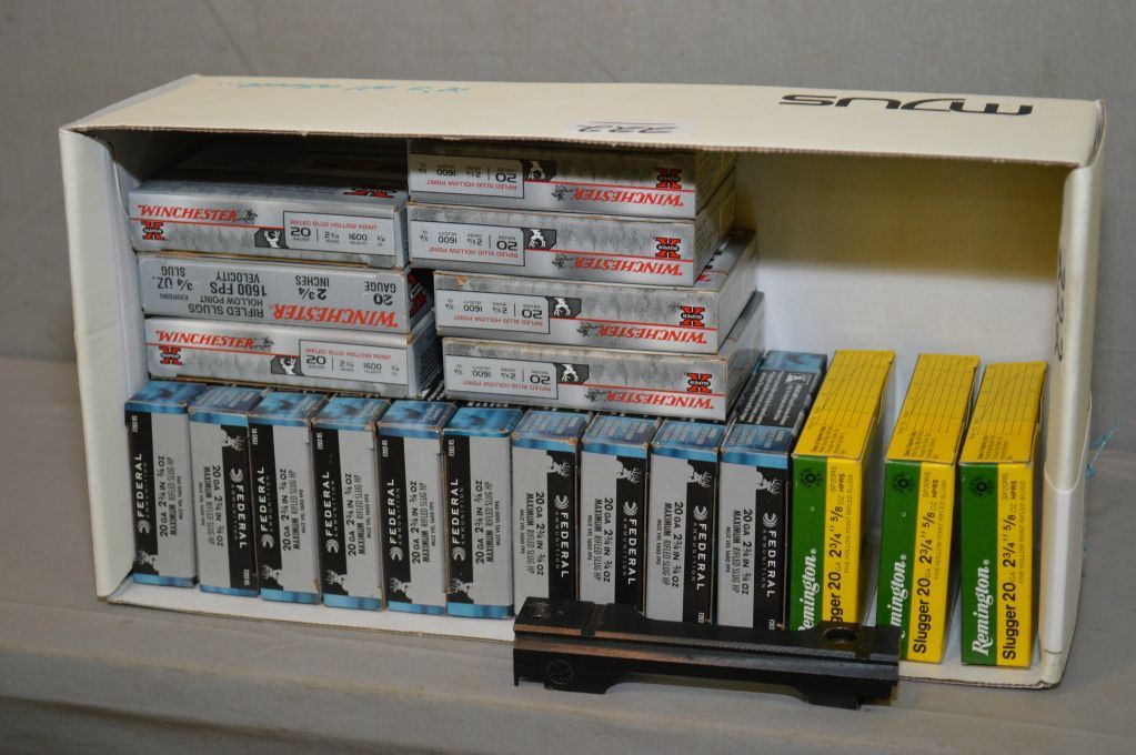 Tray Lot : Approx Twenty Boxes ( 5 rnds per ) Various .20 Ga Rifled Slugs - Part of S & K scope base
