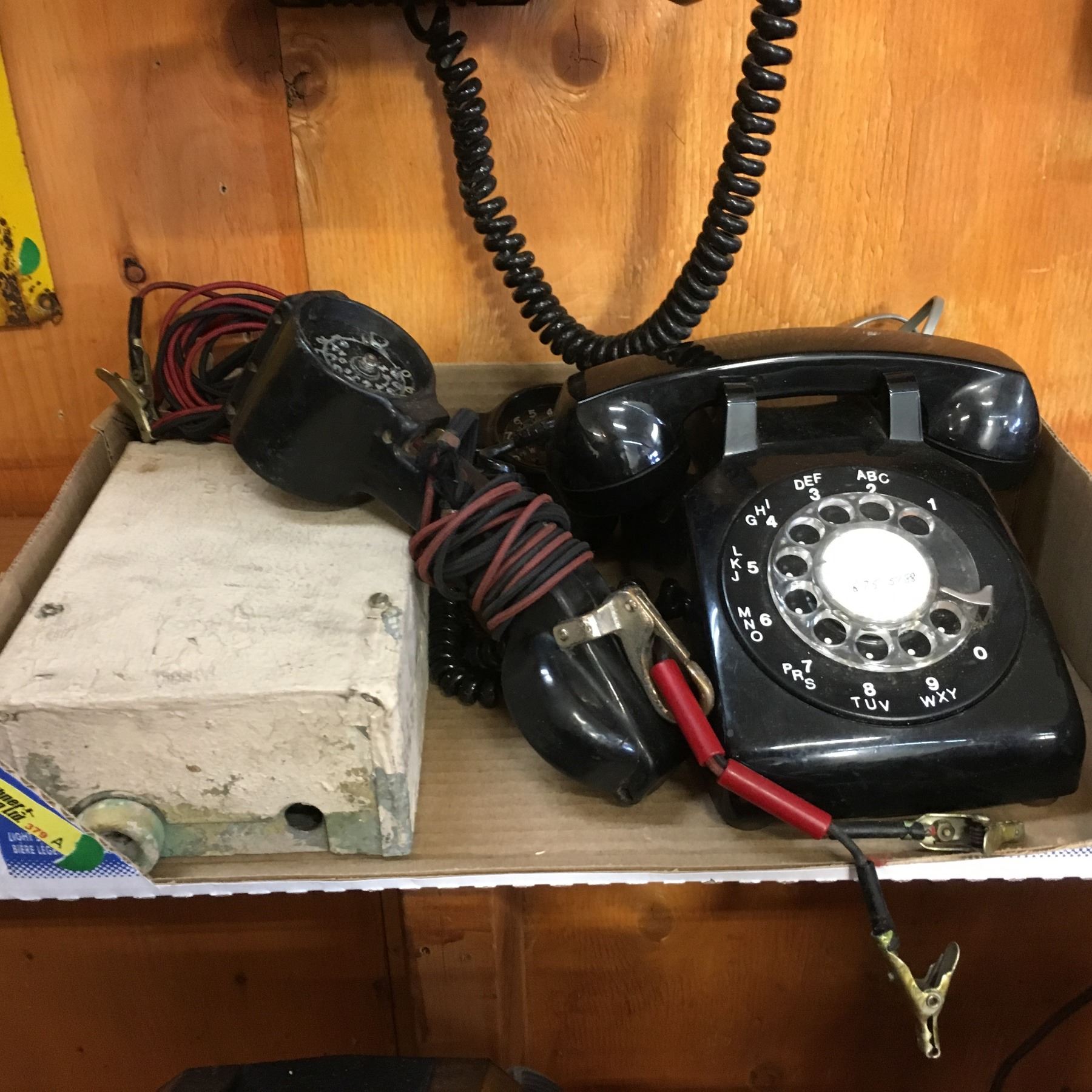 Tray Lot: BELL Theme (Junction Box, Tin Sign, Service Phones, Rotary Phone)