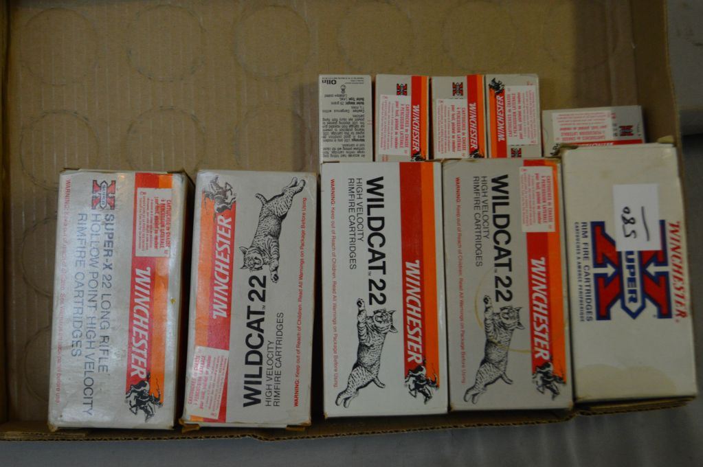 Tray Lot : Four Bricks ( 500 rnds per ) Winchester Wildcat .22 Long Rifle Cal Ammo - Eight Boxes ( 50 rnds per ) Winchester Super X .22 Long Rifle Cal Ammo - 5 Boxes ( 50 rnds) Winchester .22 Short Cal Ammo