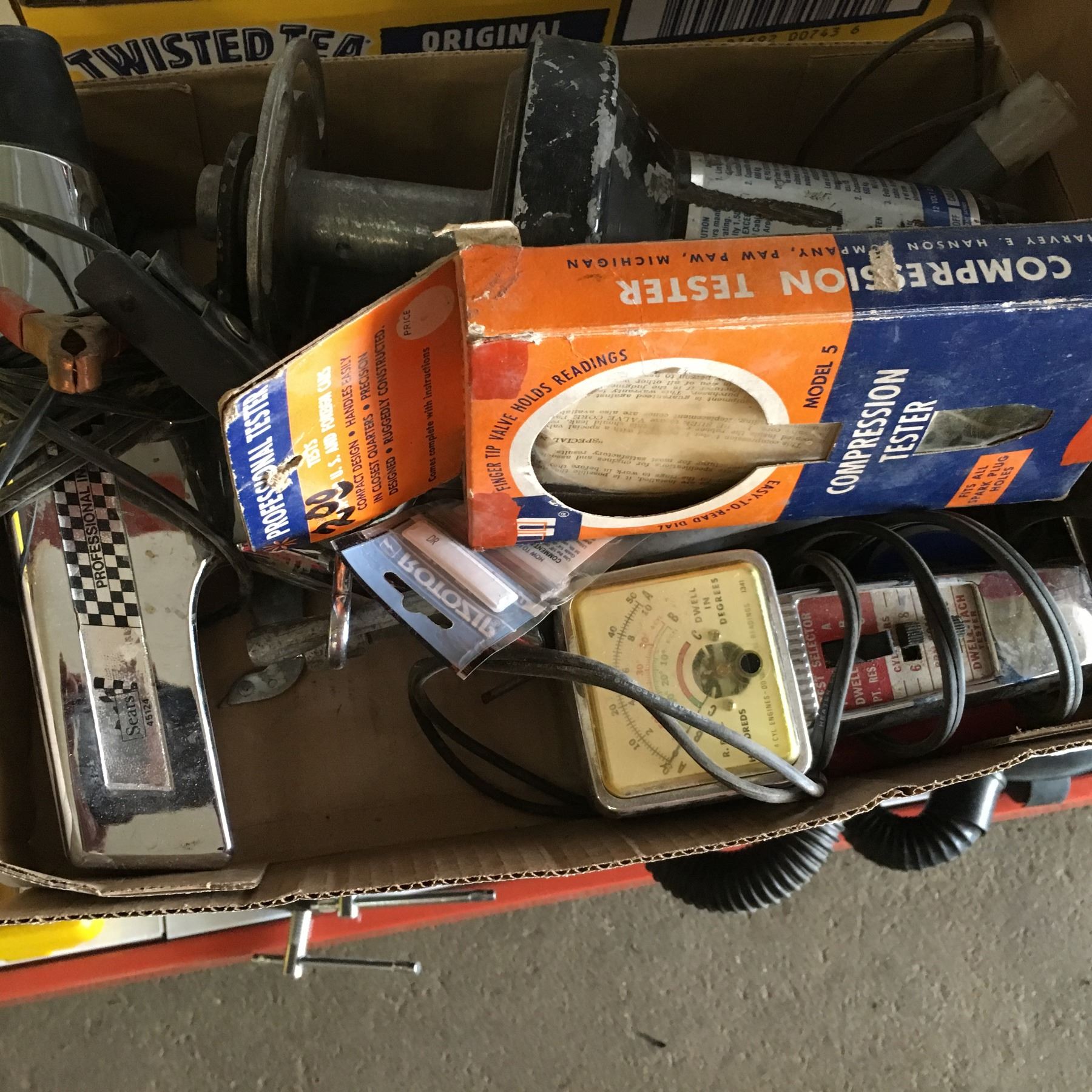 Tray Lot: Timing Light, Tack & Dwell Gauge, Remote Starter, Elec. Winch, etc