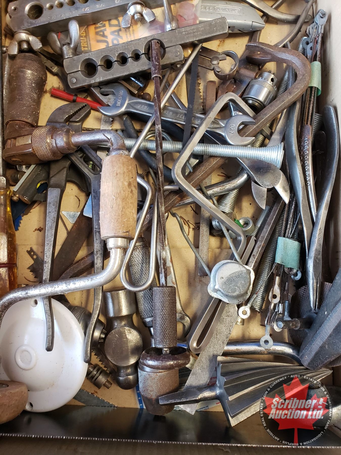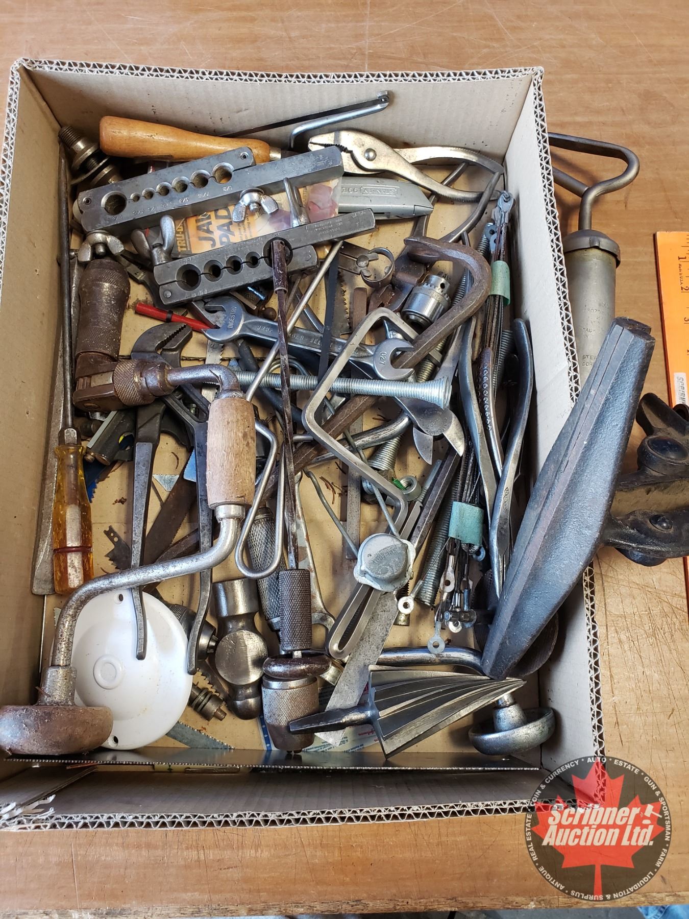 Tray Lot: Tools (Screwdrivers, Brace, Pipe Reamer, Grease Gun, Flaring Tools, etc) (See pics)