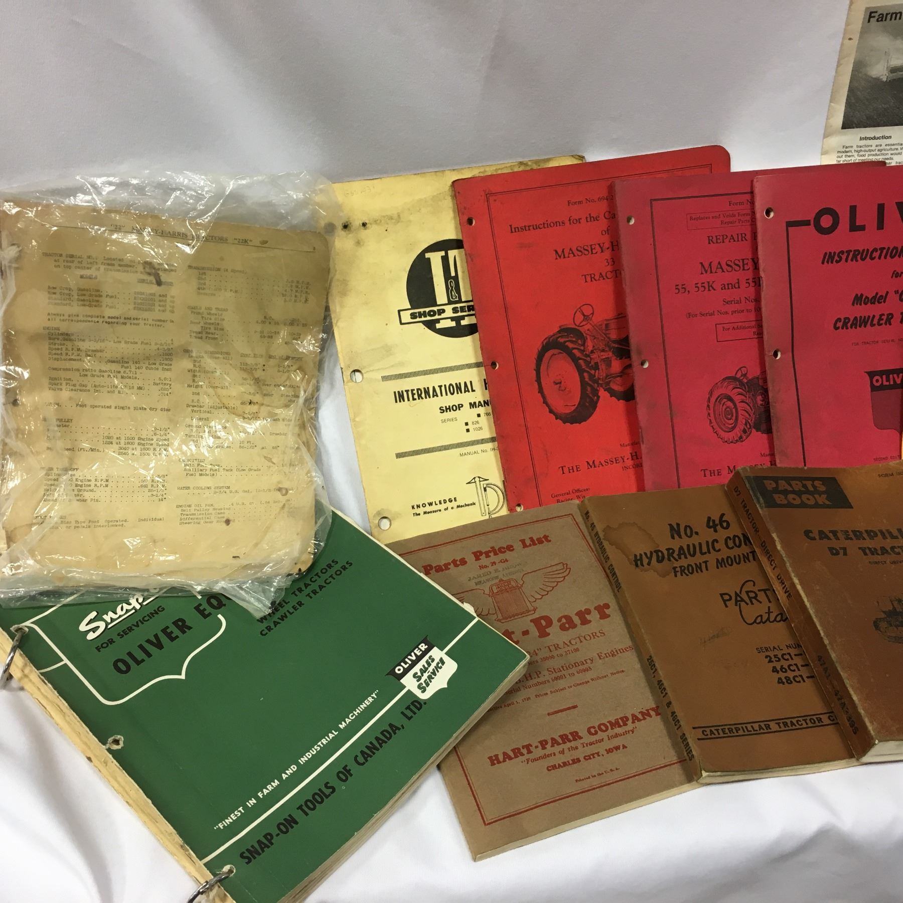 Tray Lot: Tractor Manuals, Dry Cell Battery, Retro Windshield Deflectors