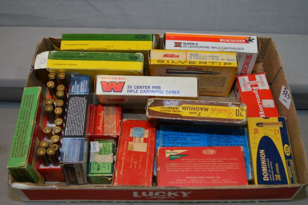 Tray Lot: Various Part Boxes of ammo & bullets including : some primed brass : .303 Savage, .30 -06, some possible reloads, .270 Win reloads - .38 - 40 Win - .300 H & H - etc
