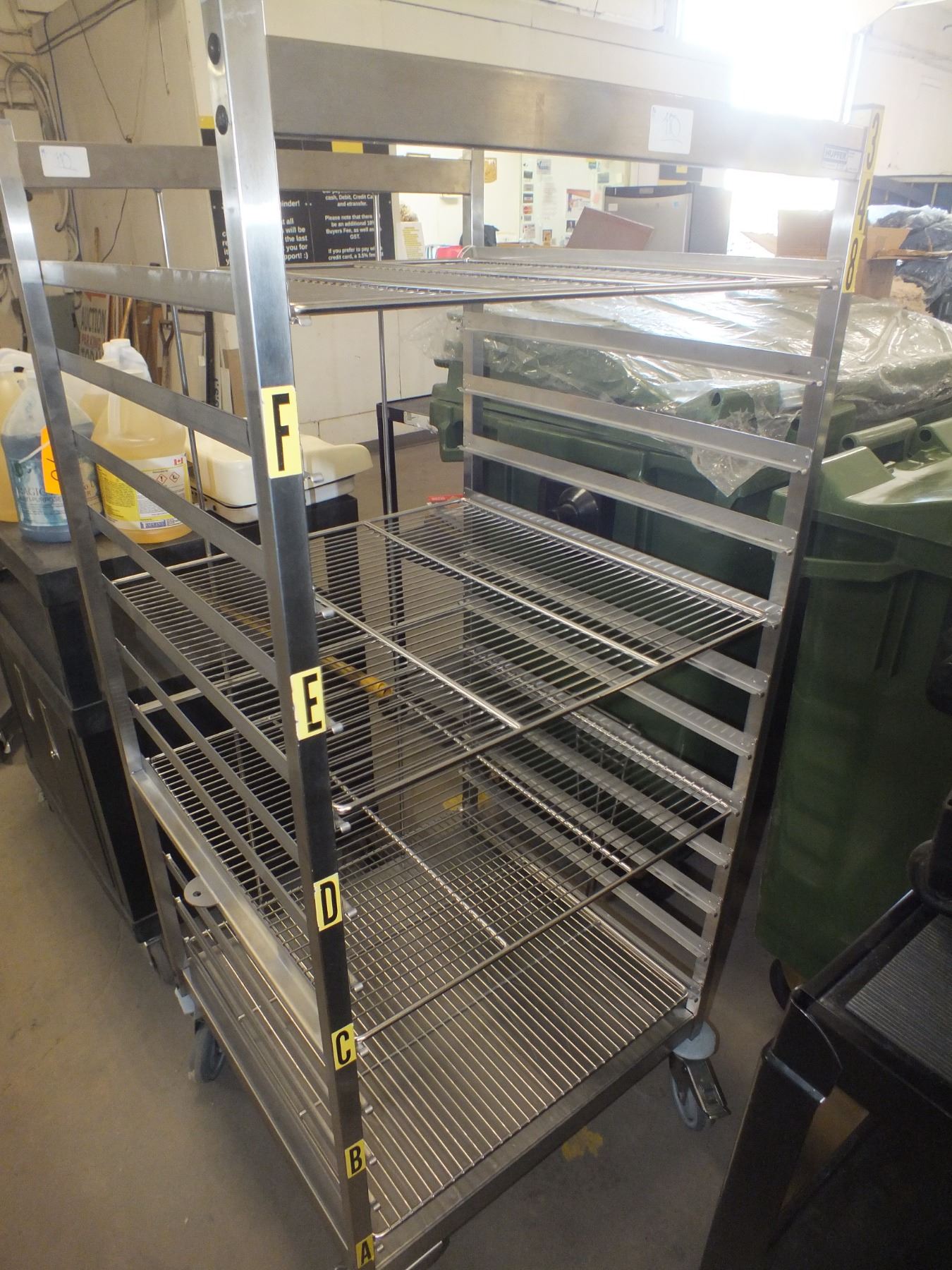 Tray Rack On Wheels, 27 1/2"l 25 1/2"w 62 1/2"h...used