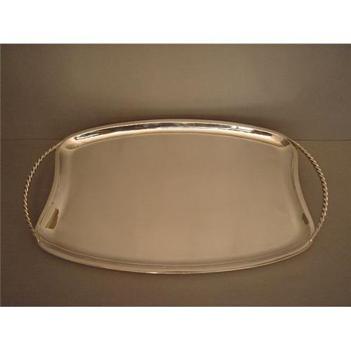 A FABULOUS STERLING SILVER TRAY. VERY SLEEK OVAL FORM WITH TWISTED HANDLES. GERMAN CIRCA 1950.EXCELLANT CONDITION! </em></td>