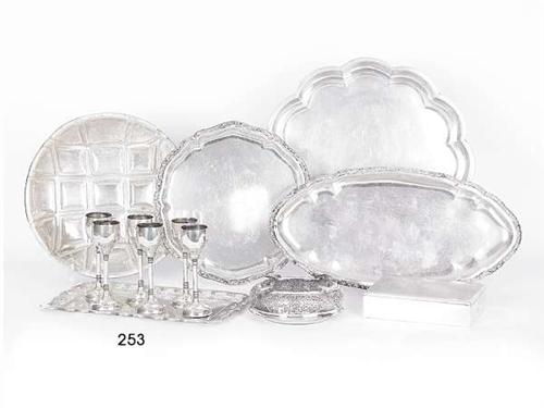 Silver, tray with lobed border and pressed decoration, Budapest, circa 1940, stemmed cups, Pest, circa 1930, weight: 347.0 g.