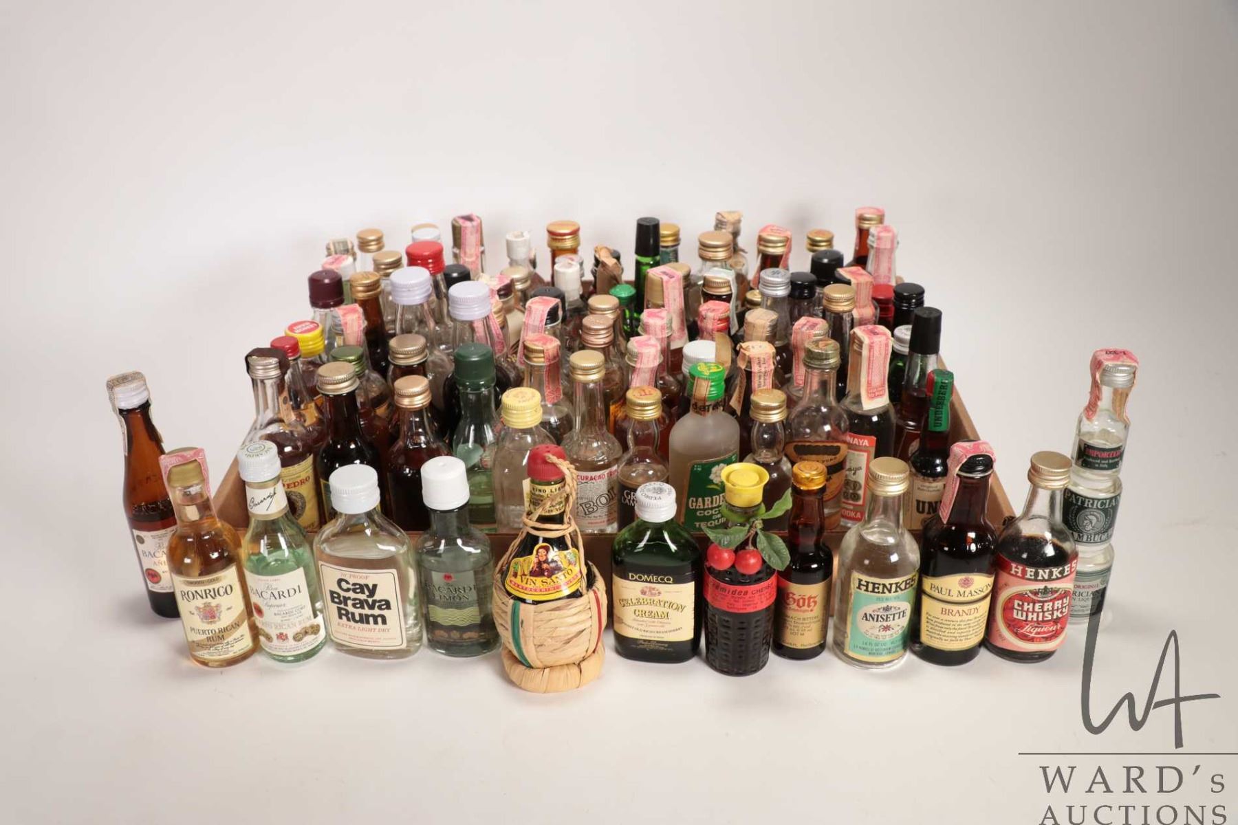Tray lot of assorted miniature liqour bottles. Assorted sizes and ABV's. Note: Alcohol cannot be ins