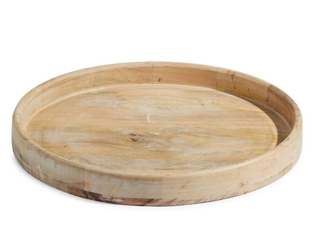 Round natural wood tray, ideal for decor or serving, 40cm diameter, new.