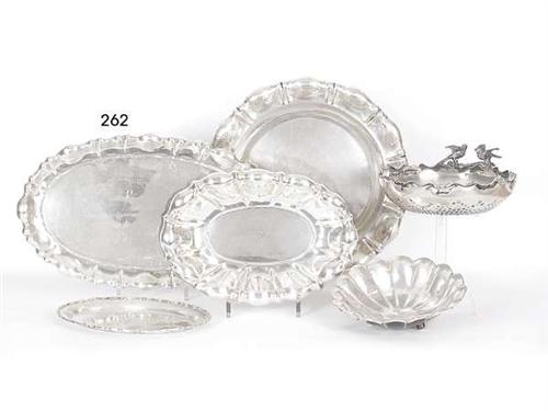 Silver, oval form, blown border, Pest, circa 1930, Diana mark, weight: 469.0 g, size: 23x38 cm.