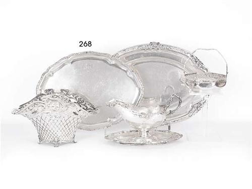 Silver, chased, oval form, border decoration, engraved initials, Pest, circa 1930, Diana mark, weight: 519.0 g, size: 25.5x34 cm.